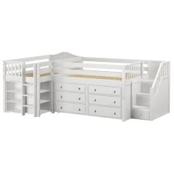 Maxtrix Twin Full Low Corner Loft Bed With Ladder, Stairs + Storage