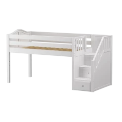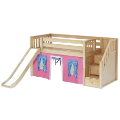 Maxtrix Twin Low Loft Bed With Stairs, Curtain, Top Tent, Tower + Slide