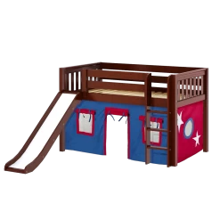 Maxtrix Twin Low Loft Bed With Straight Ladder, Curtain + Slide