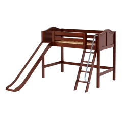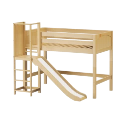 Maxtrix Twin Mid Loft Bed With Angled Ladder, Curtain + Slide