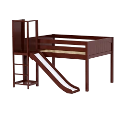 Maxtrix Full Low Bunk Bed With Straight Ladder, Curtain + Slide