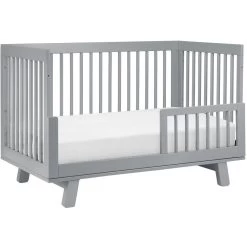 Delight in mid-century modern appeal with the Hudson 3-in-1 Convertible Crib. Featuring stylish rounded spindles and an open modern silhouette, the Hudson Crib is made with eco-friendly, non-toxic materials backed with GREENGUARD GOLD certification. An included toddler bed conversion kit allows you to seamlessly convert from crib to toddler bed to daybed, while the additional Junior bed conversion kit (M4299, sold separately) means that your Hudson can grow along with your babe. And whether you prefer a contemporary or time-honored palette for your nursery, Hudson has you covered from modern greys, clean white, and playful two-tones.
