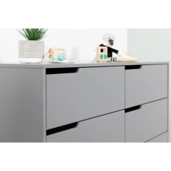 - Six spacious drawers with metal drawer glides and stop mechanisms to prevent drawers from pulling out