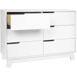 So many onesies, so little time… the babyletto Hudson 6-Drawer Double Dresser is here to help! An upgrade from our best-selling dresser, this six drawer version arrives fully assembled, ready out of the box to keep your babe’s wardrobe neat and organized. Complements the mid-century modern-inspired Hudson 3-in-1 Convertible Crib with matching angular feet. Versatile style to pair with other babyletto designs and fit in any modern bedroom.