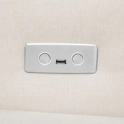 - Modern wingback style recliner with hidden push-button control panel and USB charging port