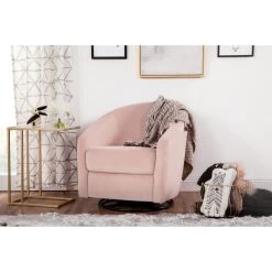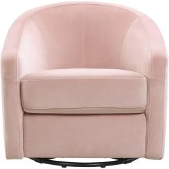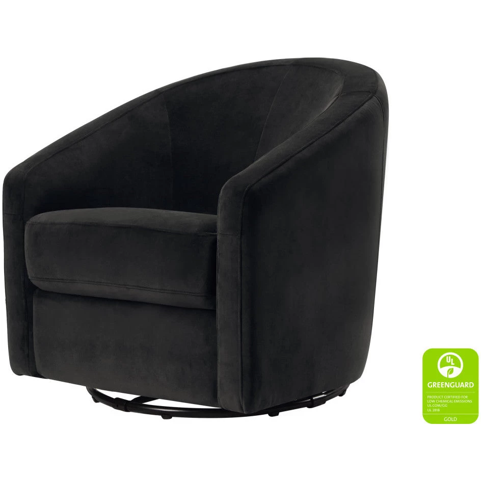 Snuggle in and rock baby to sweet slumber with the sublime comfort of the Madison Swivel Glider. This soft and cozy glider’s rounded back and spacious seat make for heavenly cuddling and story time. The Madison Glider’s metal swivel mechanism base allows you to turn and glide a full 360°; easily turn to talk with your family while staying put with baby. Upholstered by hand in ultra-soft water-repellant and stain-resistant microsuede, the classic mid-century curves of the Madison Swivel Glider will add beautiful comfort during the nursery years and beyond.