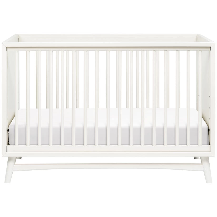 - A modern, clean silhouette and classic rounded spindles encapsulates a timeless design, while the flared tapered legs add a playful touch to this sophisticated crib