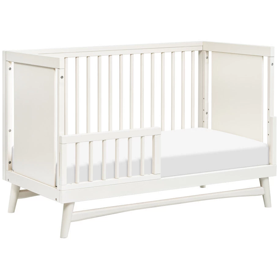 Bring a fresh perspective on mid-century design into your babe’s nursery with the Peggy 3-in-1 Convertible Crib. A modern, clean silhouette and classic rounded spindles encapsulates a timeless design, while the flared tapered legs add a playful touch to this sophisticated crib. The Peggy is made with eco-friendly, non-toxic materials and includes a toddler bed conversion kit, allowing you to seamlessly convert from crib to toddler bed to day bed for easy transition as baby grows.