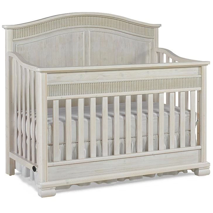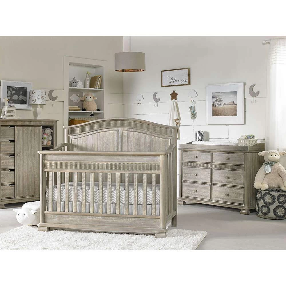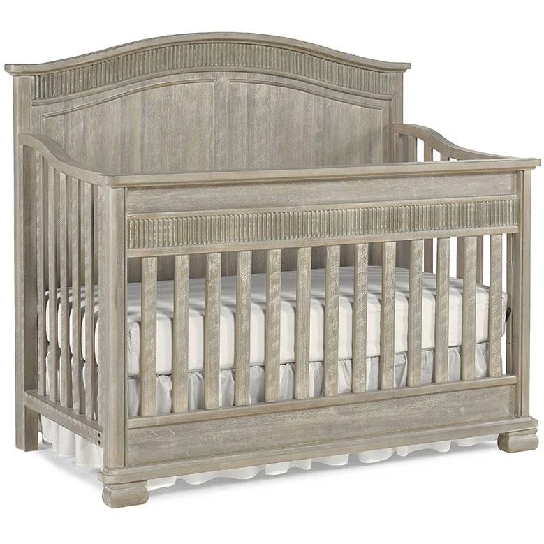 Today’s more casual living calls for uncomplicated, smart styles that can stay relevant over time. The Florenza takes architectural cues from history and updates them into a sweet collection perfect for either gender. The gently arched full panel convertible crib gives the illusion of 2 inset panels and features the fluted molding on both the headboard and footboard. Re-fashioned bun feet adorn the crib and case pieces adding a contemporary touch to the overall look. Available in Sugar Cane and Dove Grey Finishes.