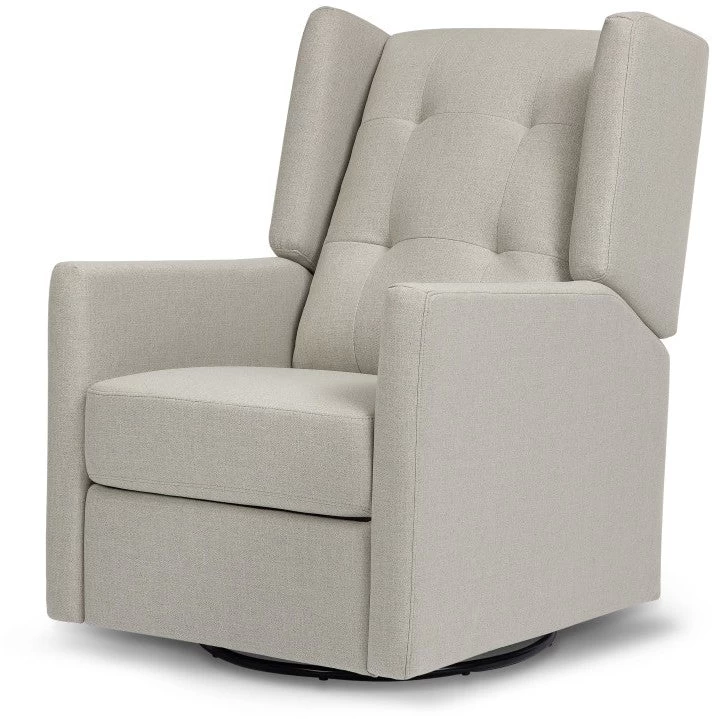 The Austen Recliner and Swivel Glider has been thoughtfully designed to make feeding time comfortable and easy. Rest easy in this comfortable, durable chair that glides, swivels, and reclines to a peaceful resting position. With its clean lines, tufted design and wingback style, this timeless and versatile recliner can easily transition from nursery to playroom or living room. Featuring a premium stain-resistant and moisture-repellent fabric, Austen will look as good as new for years to come.