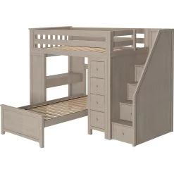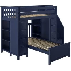 Sleep/Storage Solution – Twin Staircase Loft with built in drawers. Built-in storage towers combines 4 roomy front-facing drawers with 3 book shelves behind it. Twin Bed fits L-Shaped under Loft. Solid knot free Pine construction with flush, color coordinated hardware creates a clean & modern look. Oversized steel hardware ensures solid connections. Each bed tested for 400lb to comfortably sleep kids or adults. Pre-assembled components for fast & easy assembly. 15″ guardrails accommodate standard mattresses (slat rolls included). Recommended for 8 feet ceiling height above. This bed meets or exceeds federal safety standards. Mattress & Bedside tray sold separately.