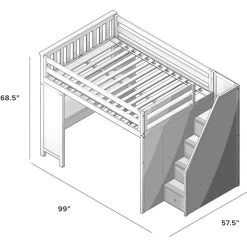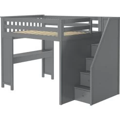 Sleep and study in style with the Fulham Loft Bed. Designed to save space, this bed makes it easy to fit a lounge or storage area underneath to create the ultimate versatile setup. The included desk comes with two drawers that are perfect for storing your schoolwork essentials. This bed’s wide, anti-slip staircase makes climbing up simple and easy. Crafted using solid, knot-free New Zealand pine wood, and strong metal-on-metal connections to provide strong support. A durable, non-toxic low VOC finish makes this the clean and healthy choice for your home. Safety and security come standard with 15†guard rails. Solid plywood slats and a metal support bar contribute to a high 400 lb. resting weight capacity per sleeping surface. The slatted headboard and flush, color-matched hardware create a modern look. Combining superior quality with classic design, this Loft with Staircase + Desk is the perfect all-in-one solution for every room.
