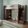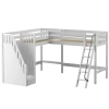 Sleep/Study/Storage Solution – Twin loft with built-in storage towers combine desk & 4 roomy front-facing drawers with 3 book shelves behind it. Twin Bed fits L-Shaped under Loft. Solid knot free Pine construction with flush, color coordinated hardware creates a clean & modern look. Oversized steel hardware ensures solid connections. Each bed tested for 400lb to comfortably sleep kids or adults. Pre-assembled components for fast & easy assembly. 15″ guardrails accommodate standard mattresses (slat rolls included). Recommended for 8 feet ceiling height above. This bed meets or exceeds federal safety standards. Mattress, Cork board for desk & Bedside tray sold separately.