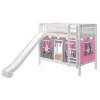 Classic slatted design made from solid, knot free Pine. Flush, color coordinated hardware creates a clean & modern look. Oversized steel hardware & safety cleat ensures solid connections. Pre-assembled components for fast & easy assembly. Each bed tested for 400lb to comfortably sleep kids or adults. Top/bottom slat rolls included – no bunkie board required. With tall 15″ guardrails the bed safely accommodates standard size mattresses. Reversible ladder with wide grooved steps and rounded edges offer comfortable & safe climbing. Recommended for 8 feet ceiling height above. Bunks separate into 2 free-standing full beds. Meets or exceeds federal safety standards. Mattresses, Trundles, Storage Drawers & Vanity panels sold separately.
