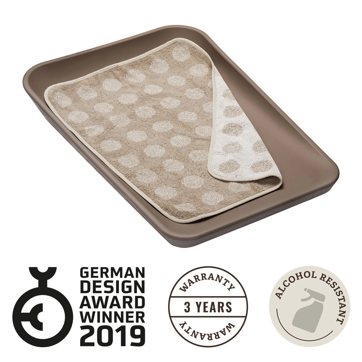 The award-winning design has a acontemporary look and will be a stylish it-piece in your home. The molded Matty™ changing mat is extremely durable. It has no seams or cracks where dirt and bacteria can hide. This means that the changing mat stays hygienic, even after several years of daily use. The water-repellent surface is easy to clean and can be disinfected.