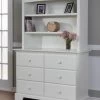 The Madison Desk Hutch (46″ x 12″ x 44″) offers plenty of storage with 2 shelves, a cork board and cord access. (Desk and chair sold separately.)