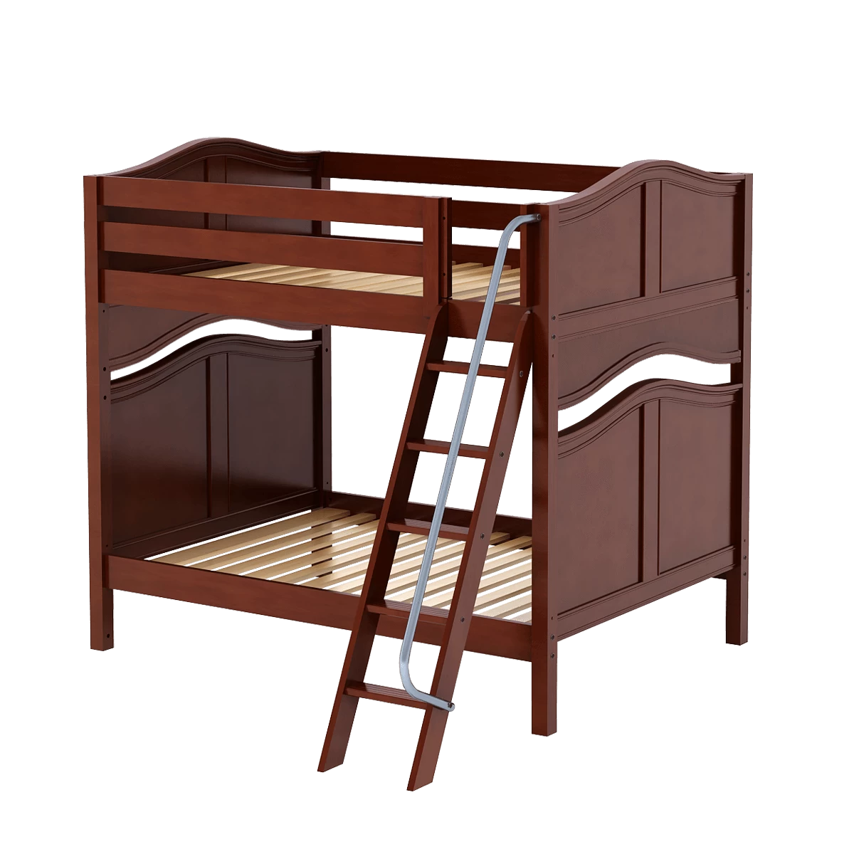 Sleep two comfortably in one bedroom while conserving space with this classic bunk bed. Two full beds stacked to form one solid unit using patented Rock Lock system. Super sturdy and strong/stable. Choose from space-saving straight ladder or extra-safe angle ladder, and low, medium or high height.
