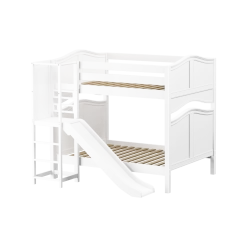 Turn up the fun on our classic high bunk bed with the new slide platform! Full size = extra room for growing kids, sleepovers or snuggling with parents. Platform doubles as entry way to top and is positioned at the bed end so slide starts further back, saving floor space.