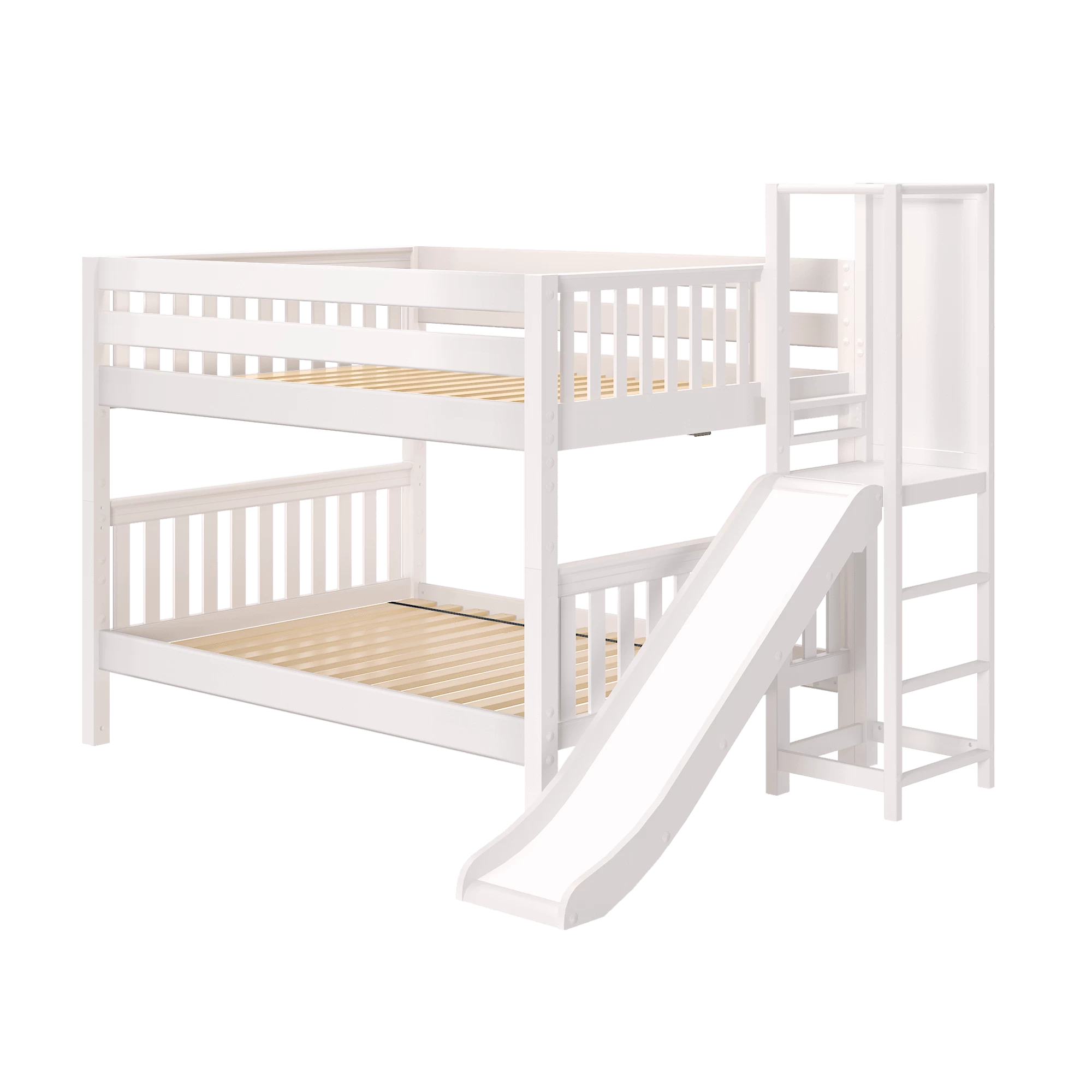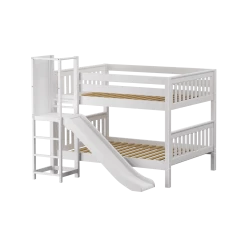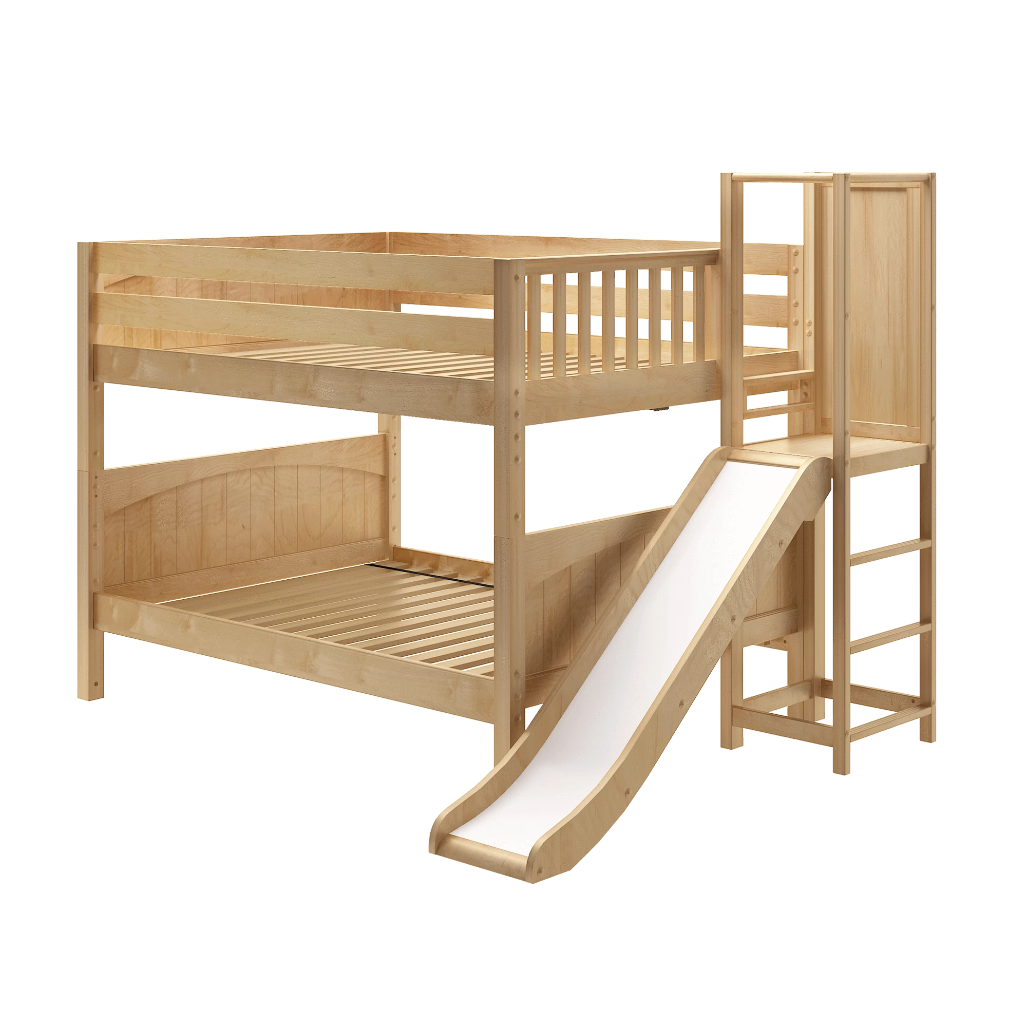 Our classic low bunk gets an extra dose of fun with the slide platform! Full size = extra room for growing kids, sleepovers and snuggling. Platform doubles as entry way to top and is positioned at the bed end so slide starts further back, saving floor space.