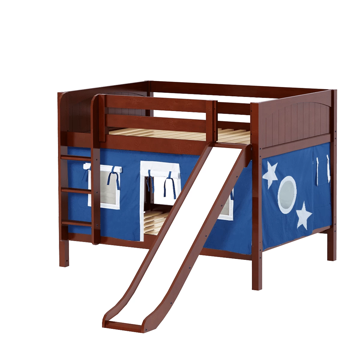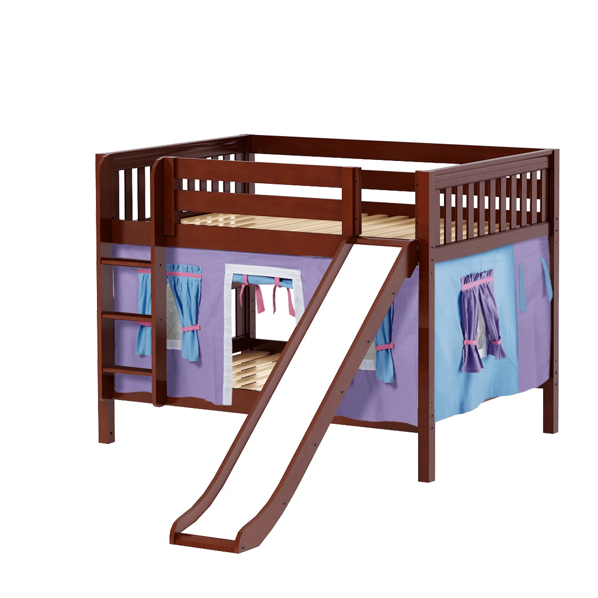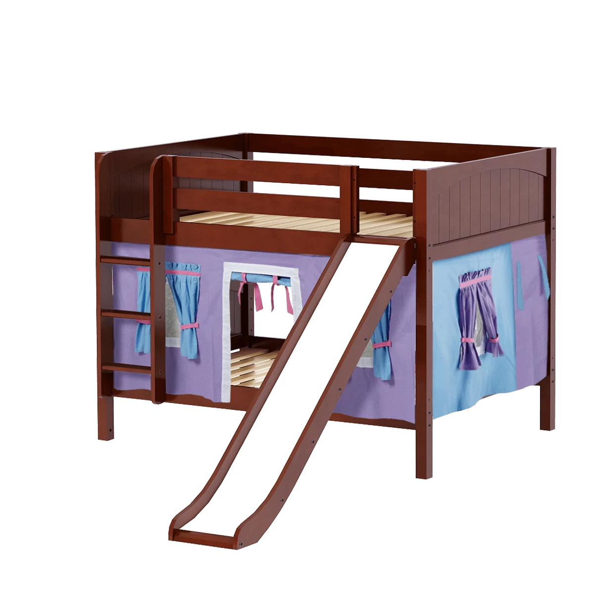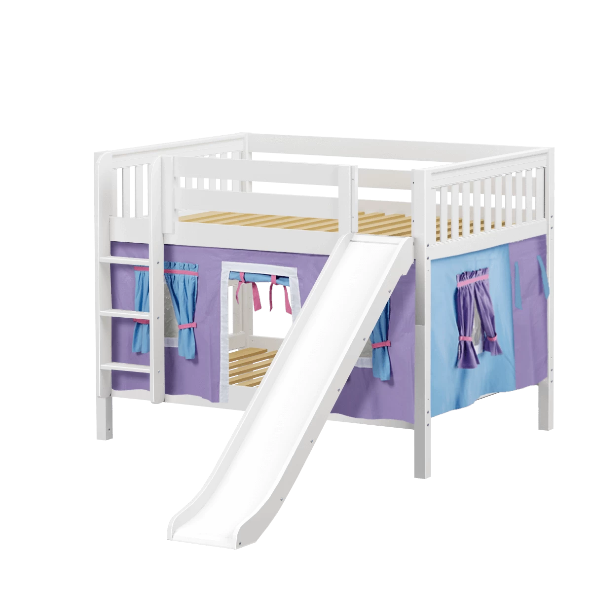 Maxtrix Full Low Bunk Bed With Straight Ladder, Curtain + Slide