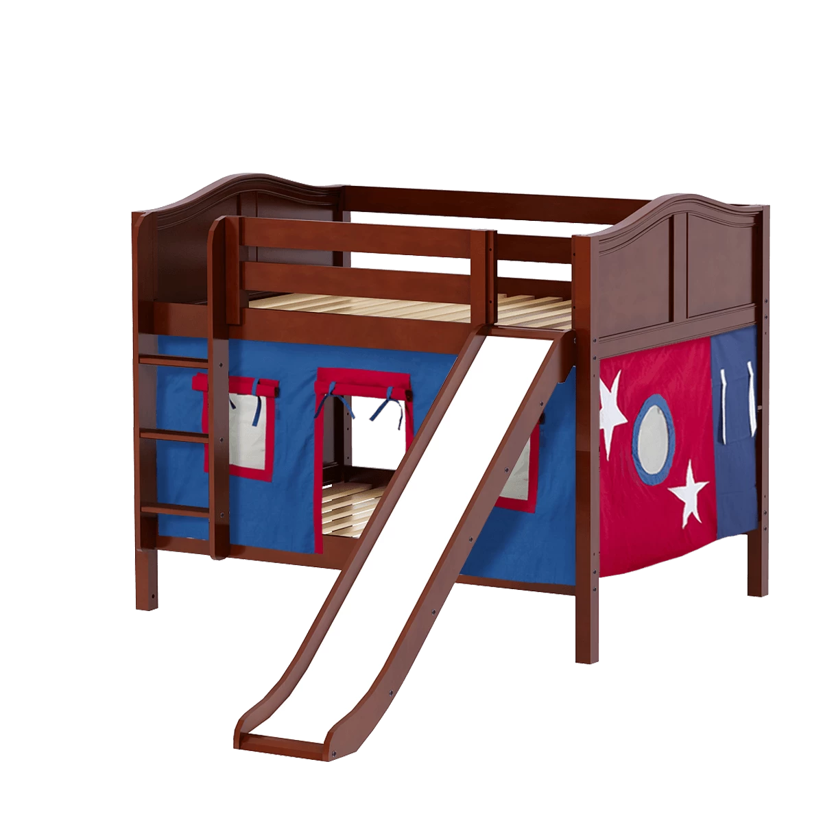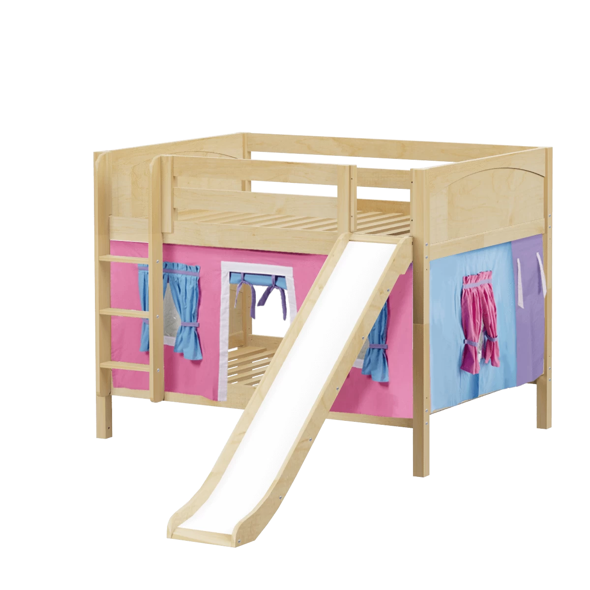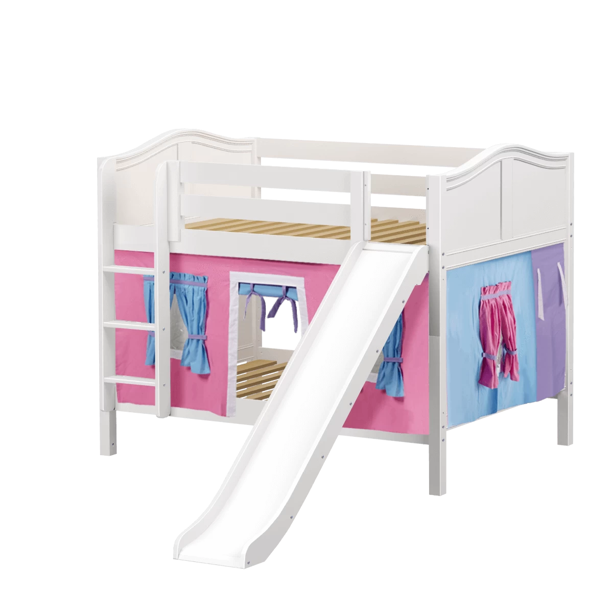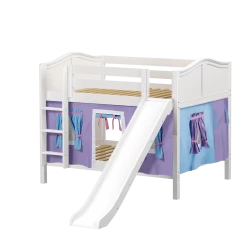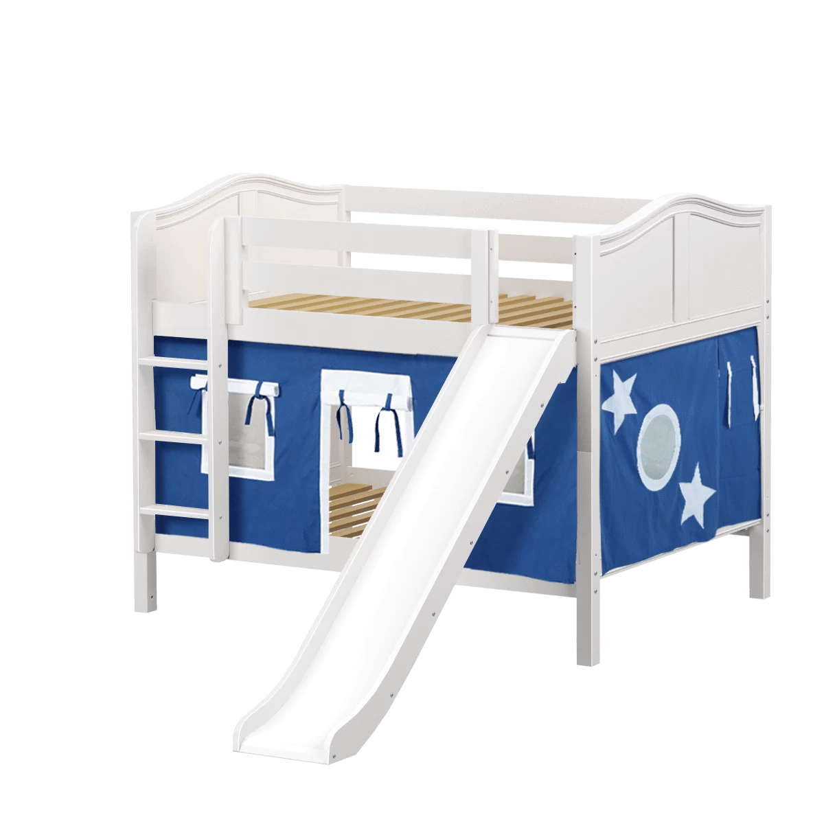 Maxtrix Full Low Bunk Bed With Straight Ladder, Curtain + Slide