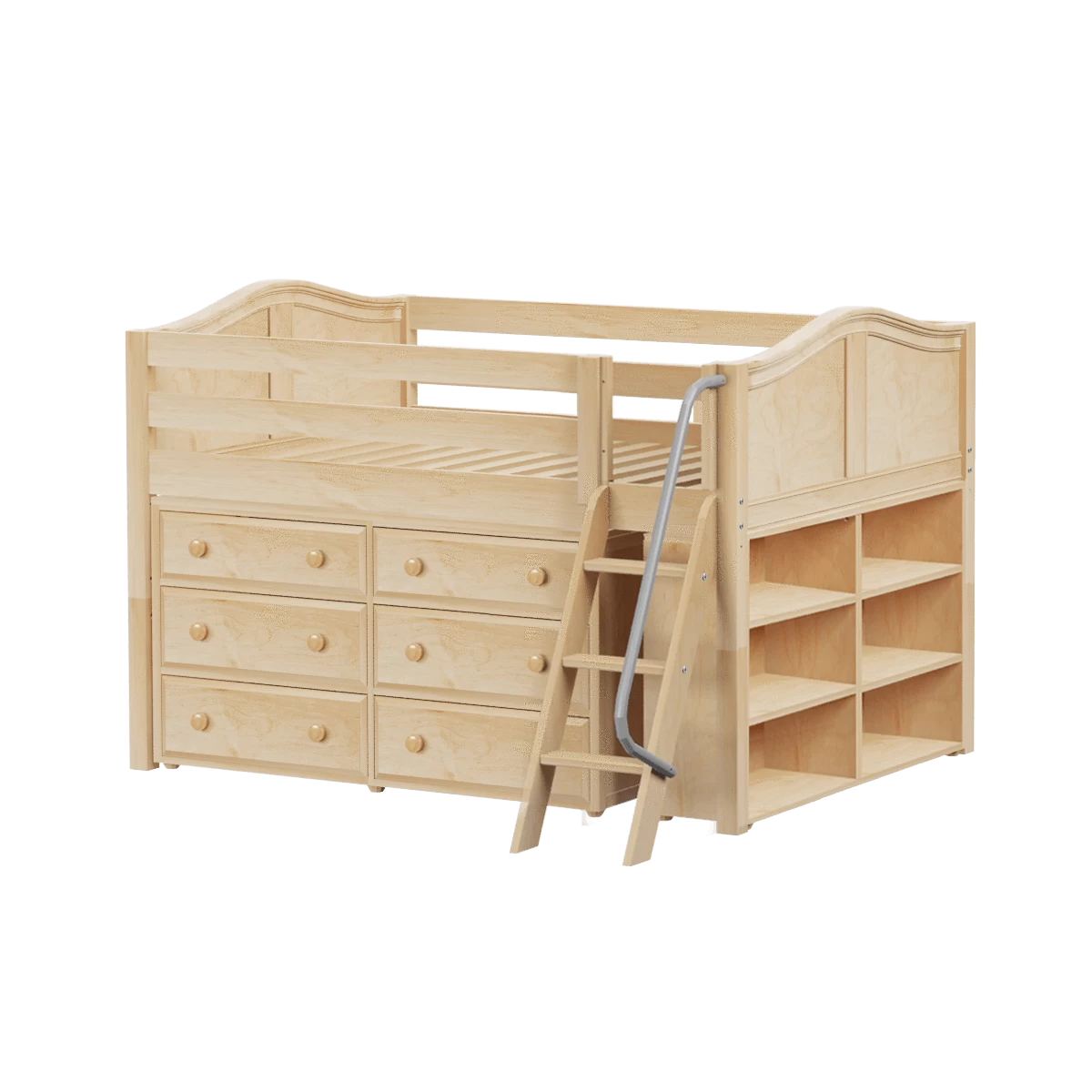 Gain storage without losing floorspace! Our low loft bed with storage is the perfect solution for anyone tight on space or just wanting to keep rooms tidy + organized.