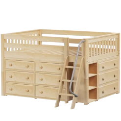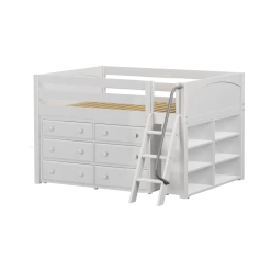 Our classic low loft bed with angled ladder becomes the ultimate storage cube! Dressers, bookcases + cube units all designed to fit perfectly. Each piece is freestanding so you can use separately for years to come. Full size = extra room for growing kids, sleepovers or snuggling.