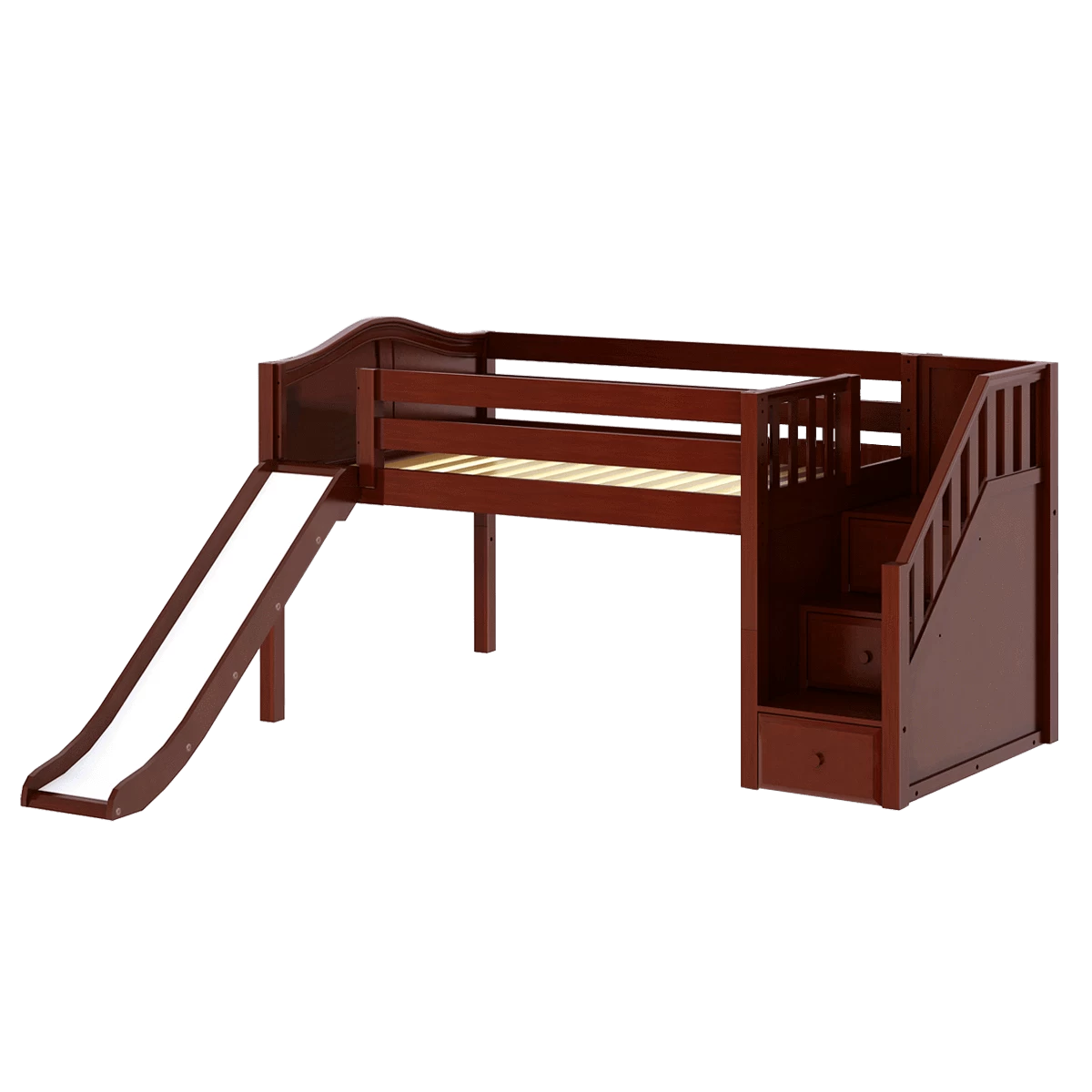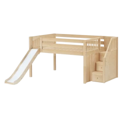 Create the perfect space for sleep and play with our popular low loft bed with stairs and slide. Steps are a safe way for younger children to climb + double as storage drawers, while slide adds pure fun! Full size = extra room for growing kids, sleepovers or snuggling with parents.