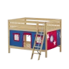 Only 50.75” high, it’s a suitable loft bed for rooms with low ceilings (8 feet and lower) and younger children. Space saving straight ladder sits flush against the bed, minimizing overall footprint.