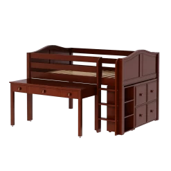 Our low loft with long desk + storage is the ultimate bedroom solution for your creative or studious child! Full size = extra room for growing kids, sleepovers or snuggling.