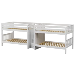 Our Full Low Quadruple Bunk Bed is just that! Two full size low bunk beds connected by a staircase in the middle.