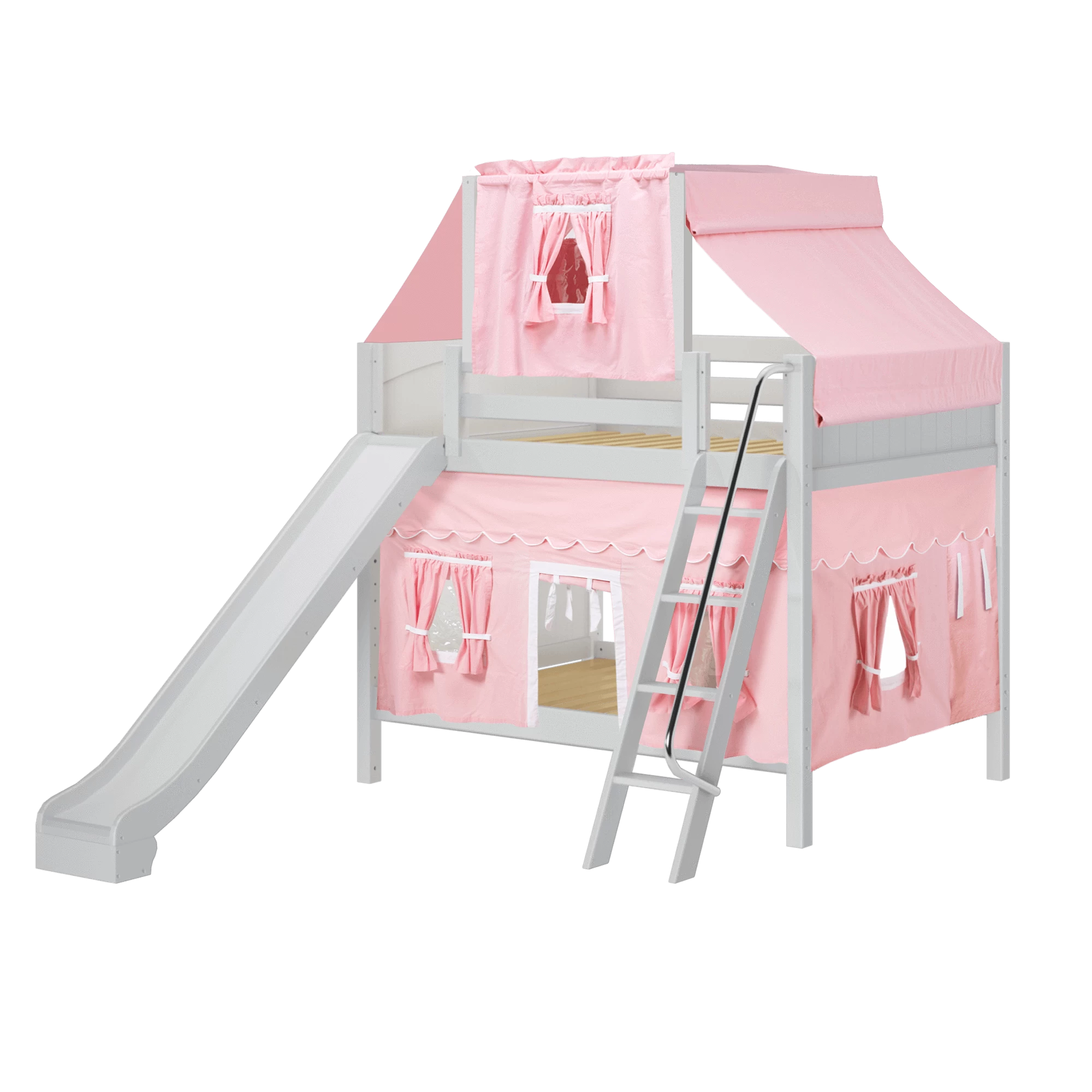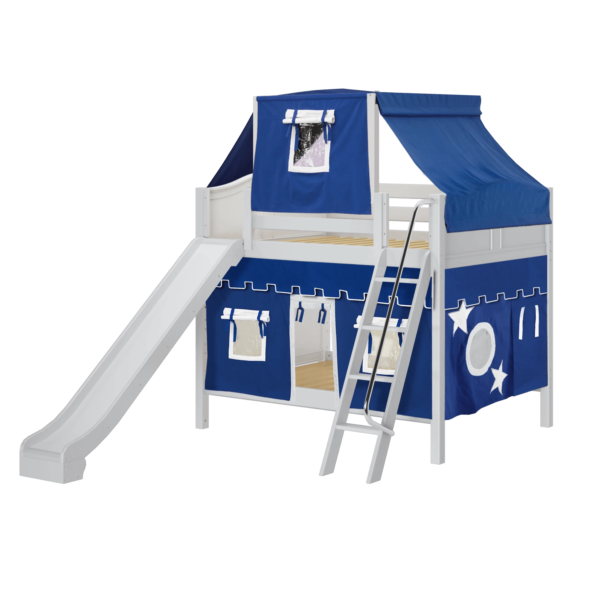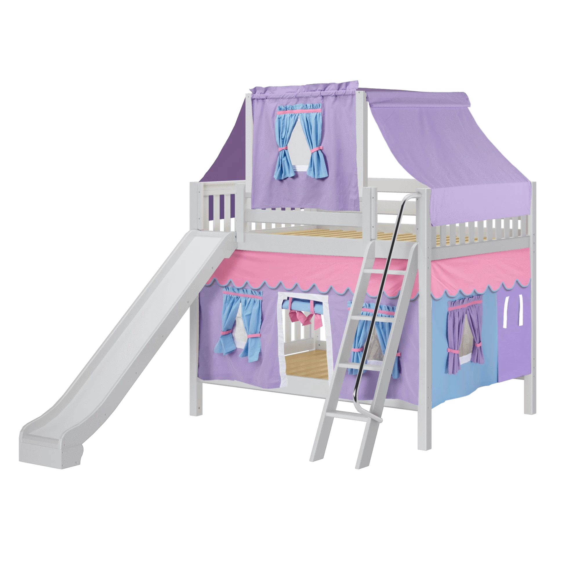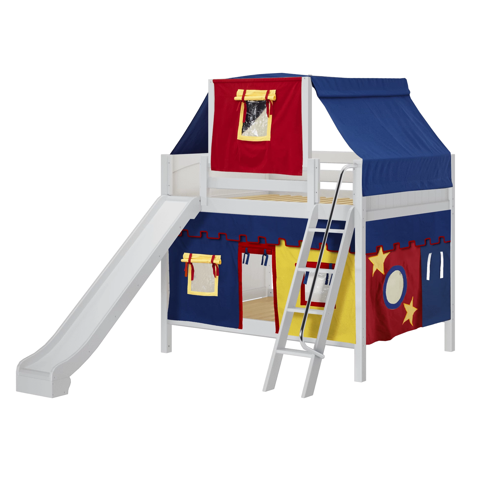 Colorful fabrics + slide turn our best-selling style into a bed built for fun. Climb up angled ladder with sturdy handrail, then take the slide back down. Medium bunk offers more space between top and bottom. Full size = extra room for growing kids, sleepovers or snuggling.