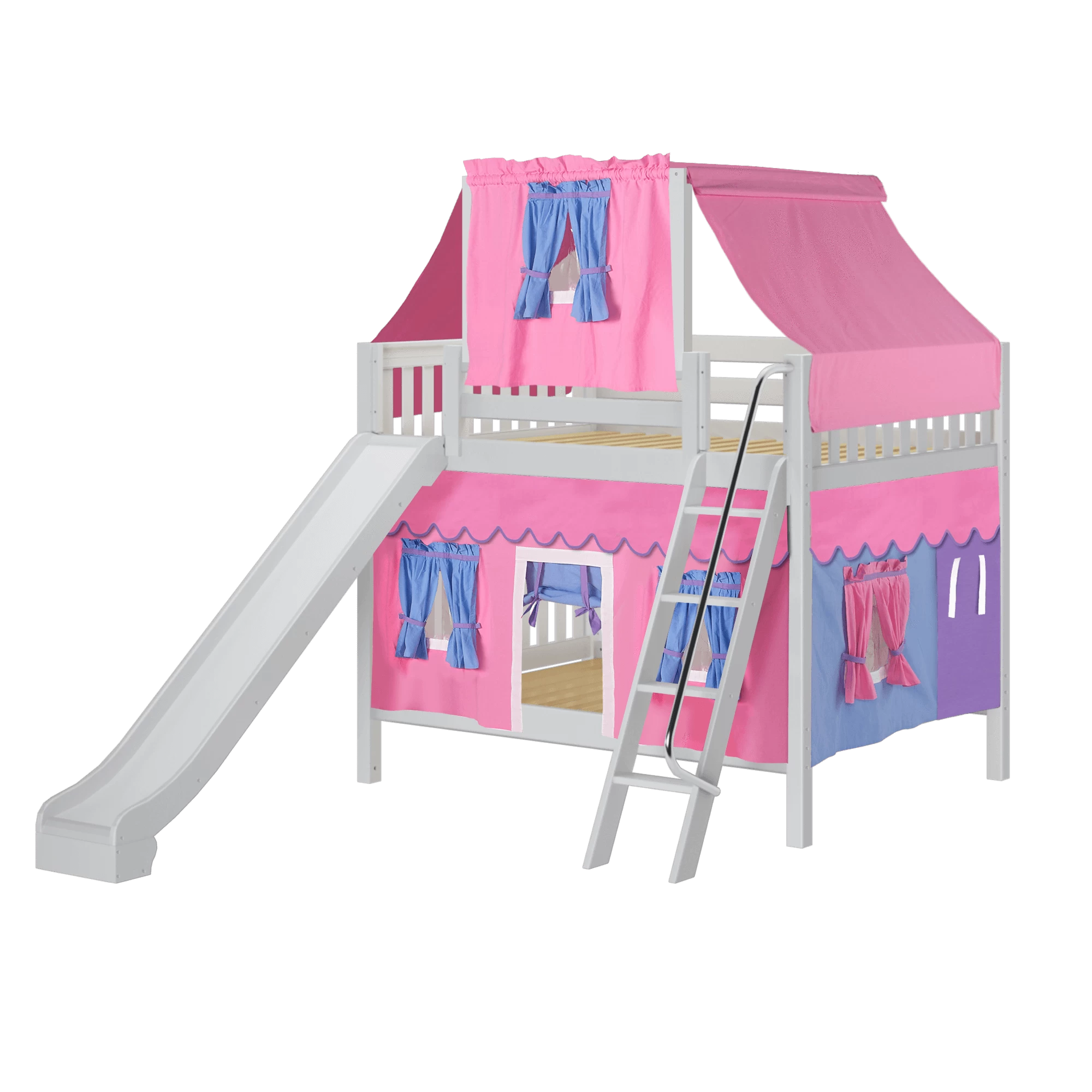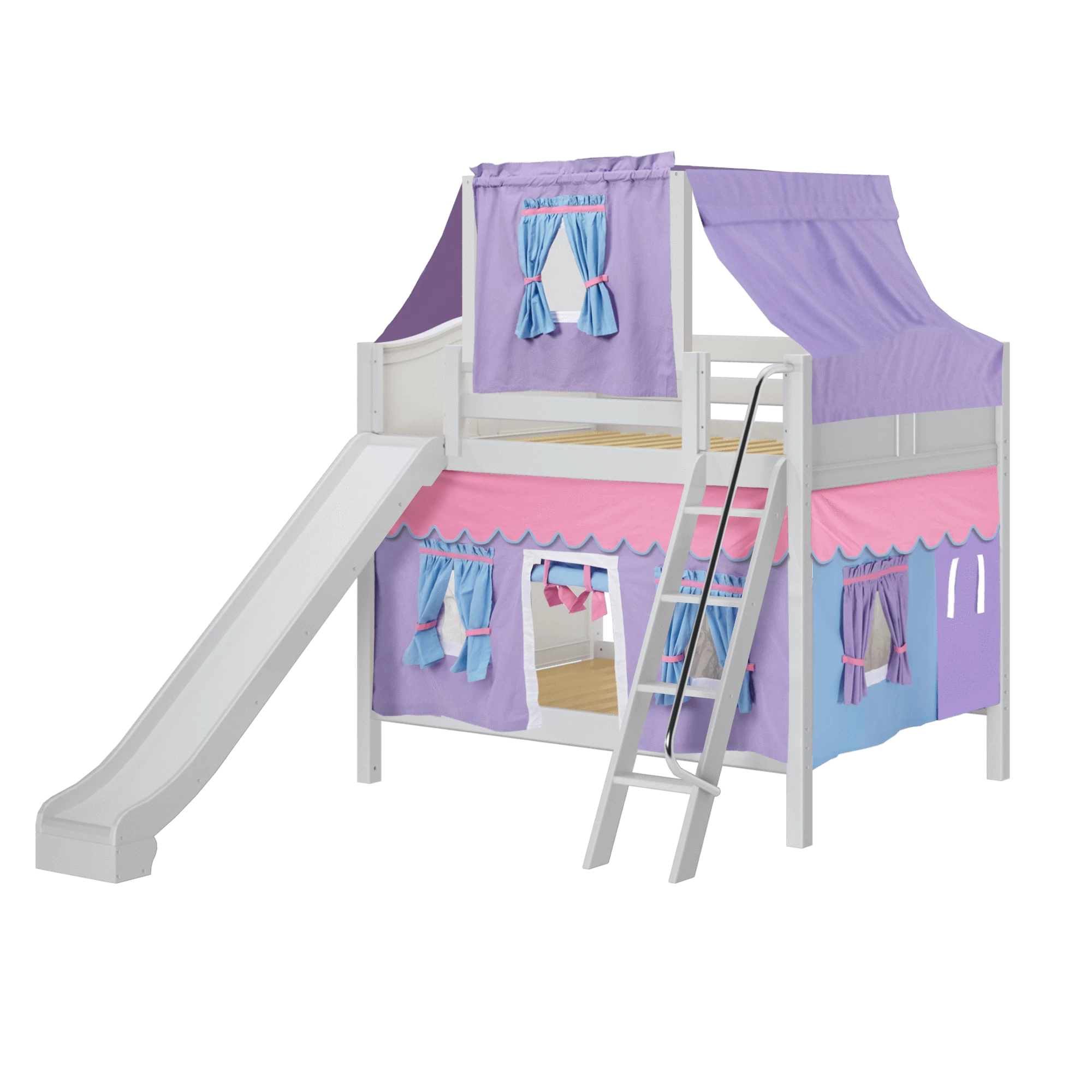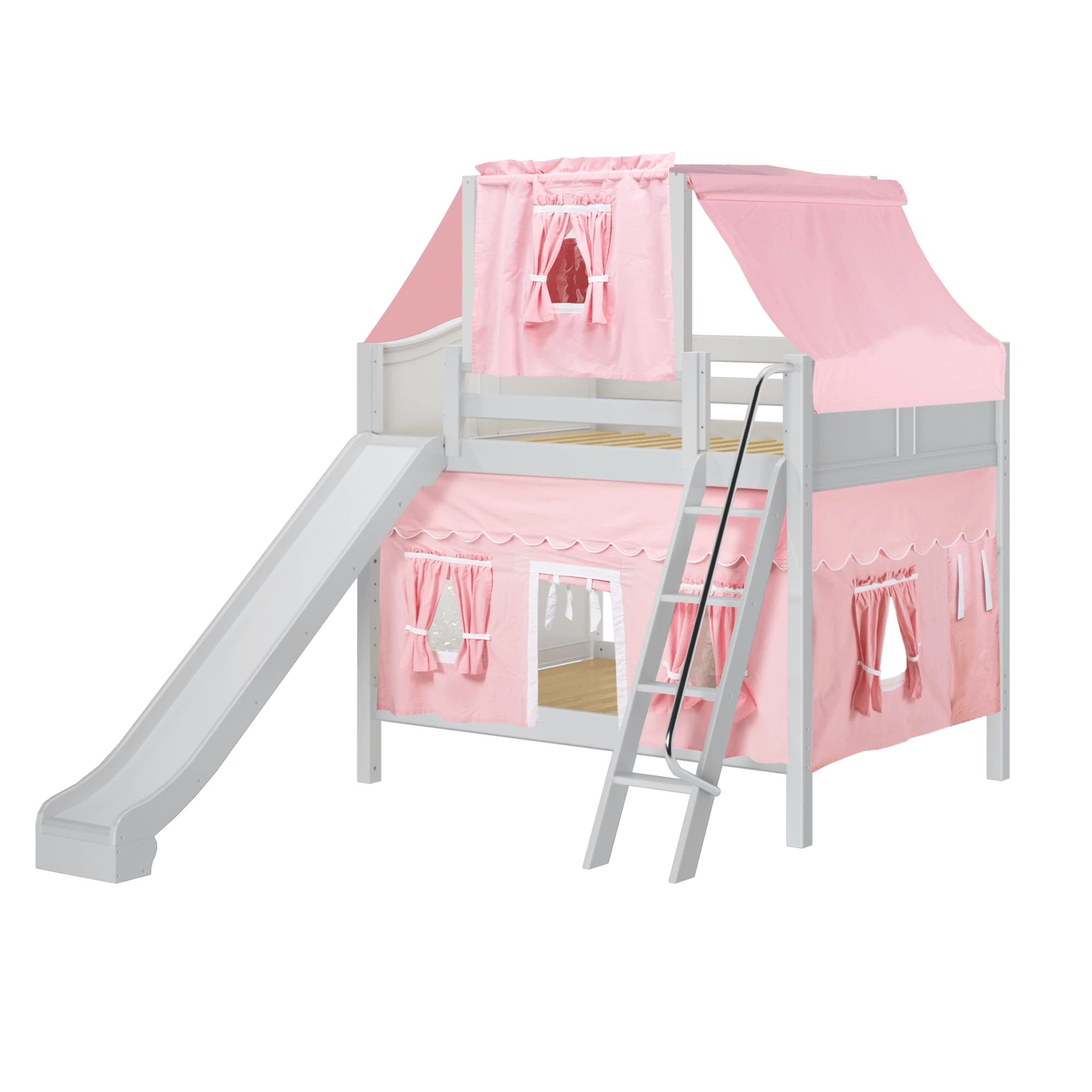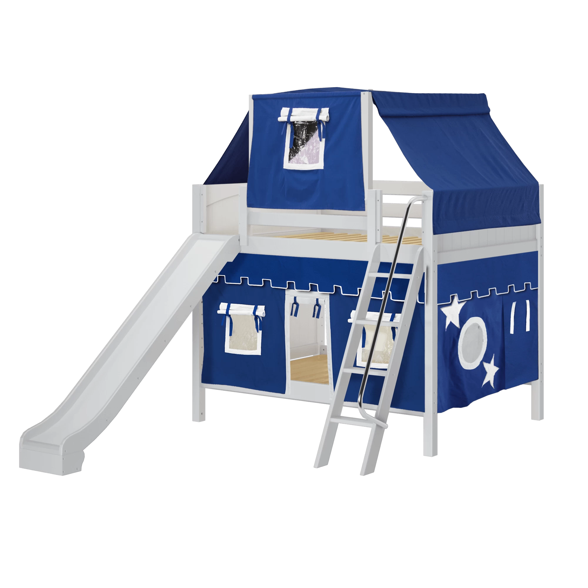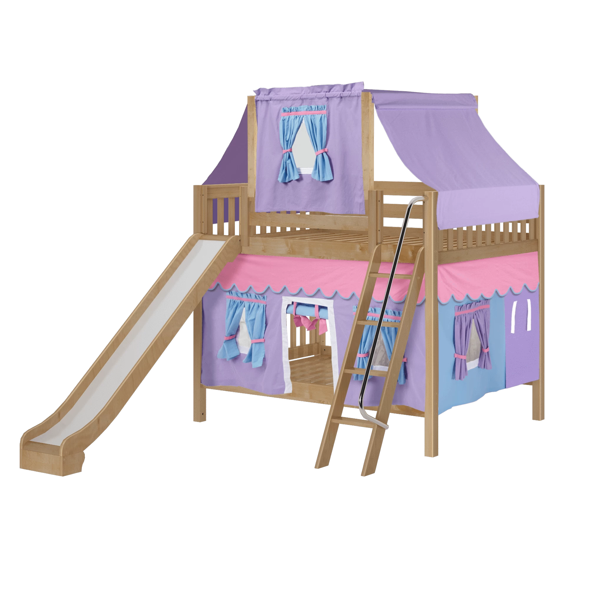 Colorful fabrics + slide turn our best-selling style into a bed built for fun. Climb up angled ladder with sturdy handrail, then take the slide back down. Medium bunk offers more space between top and bottom. Full size = extra room for growing kids, sleepovers or snuggling.