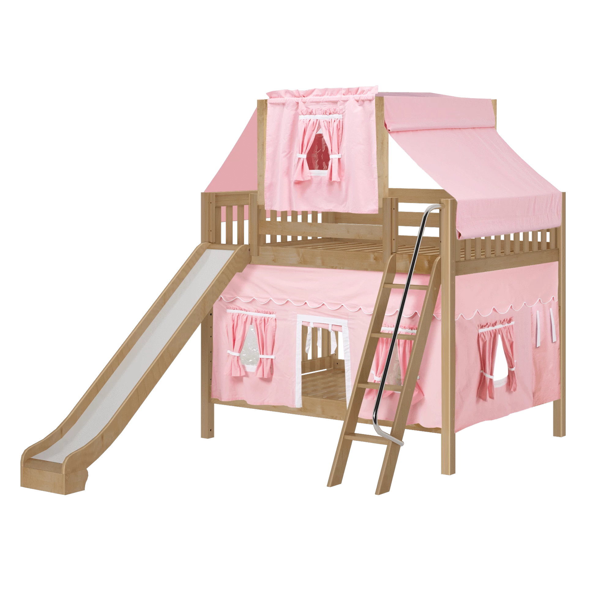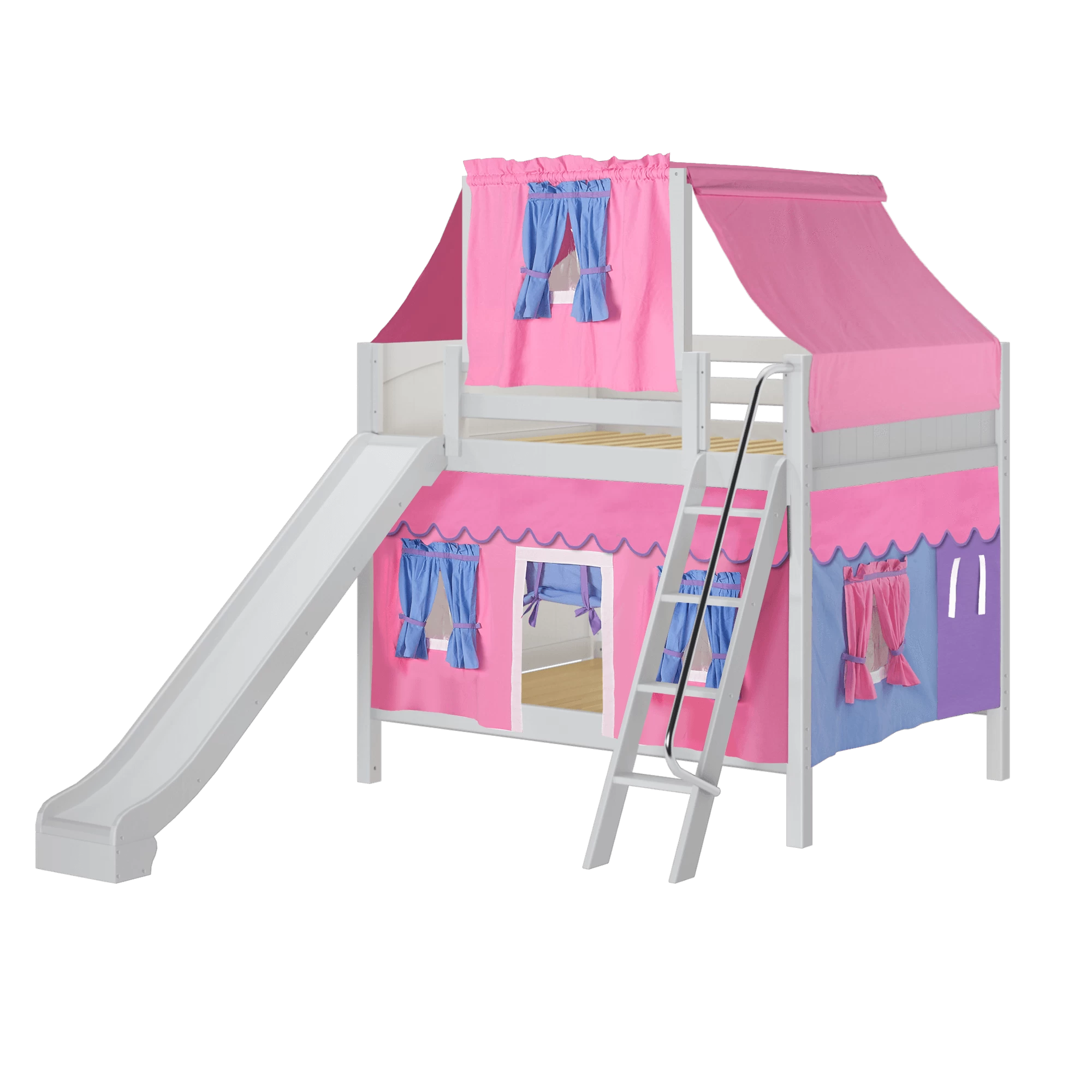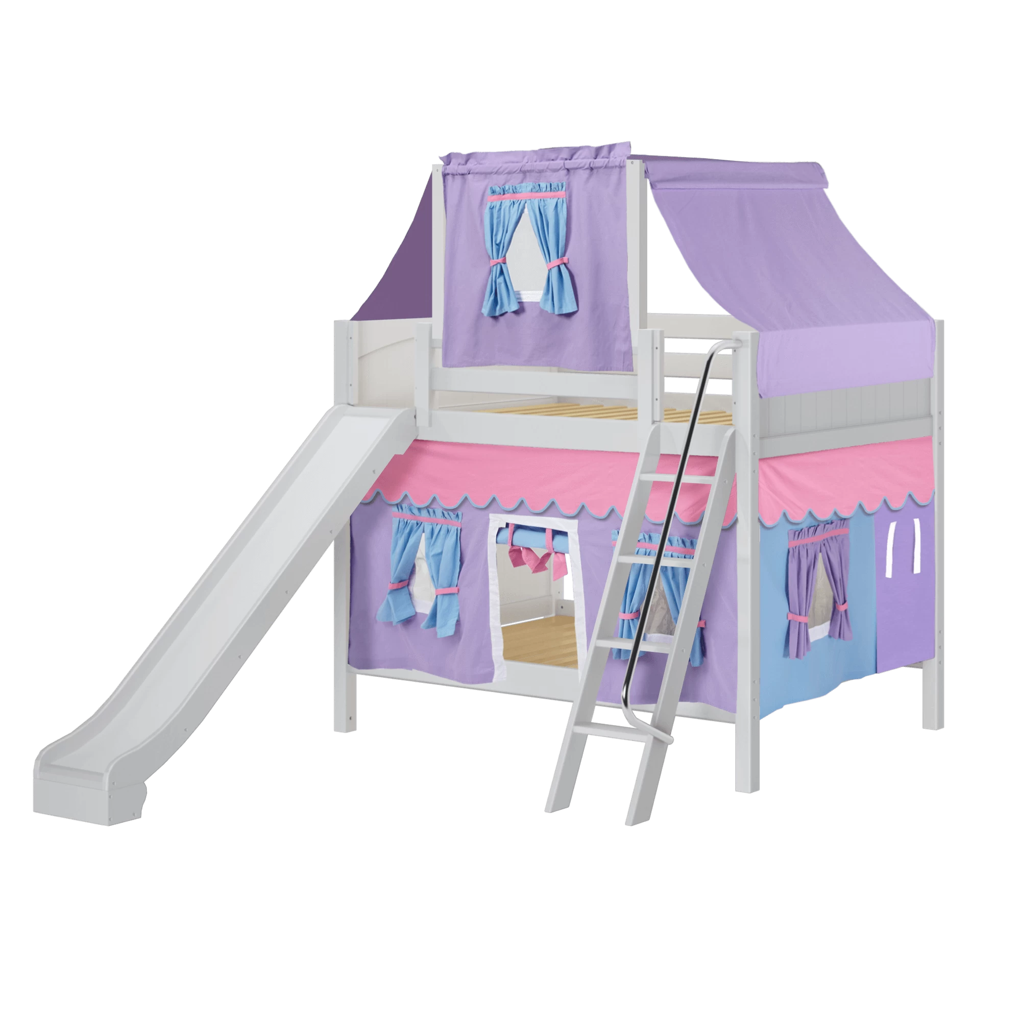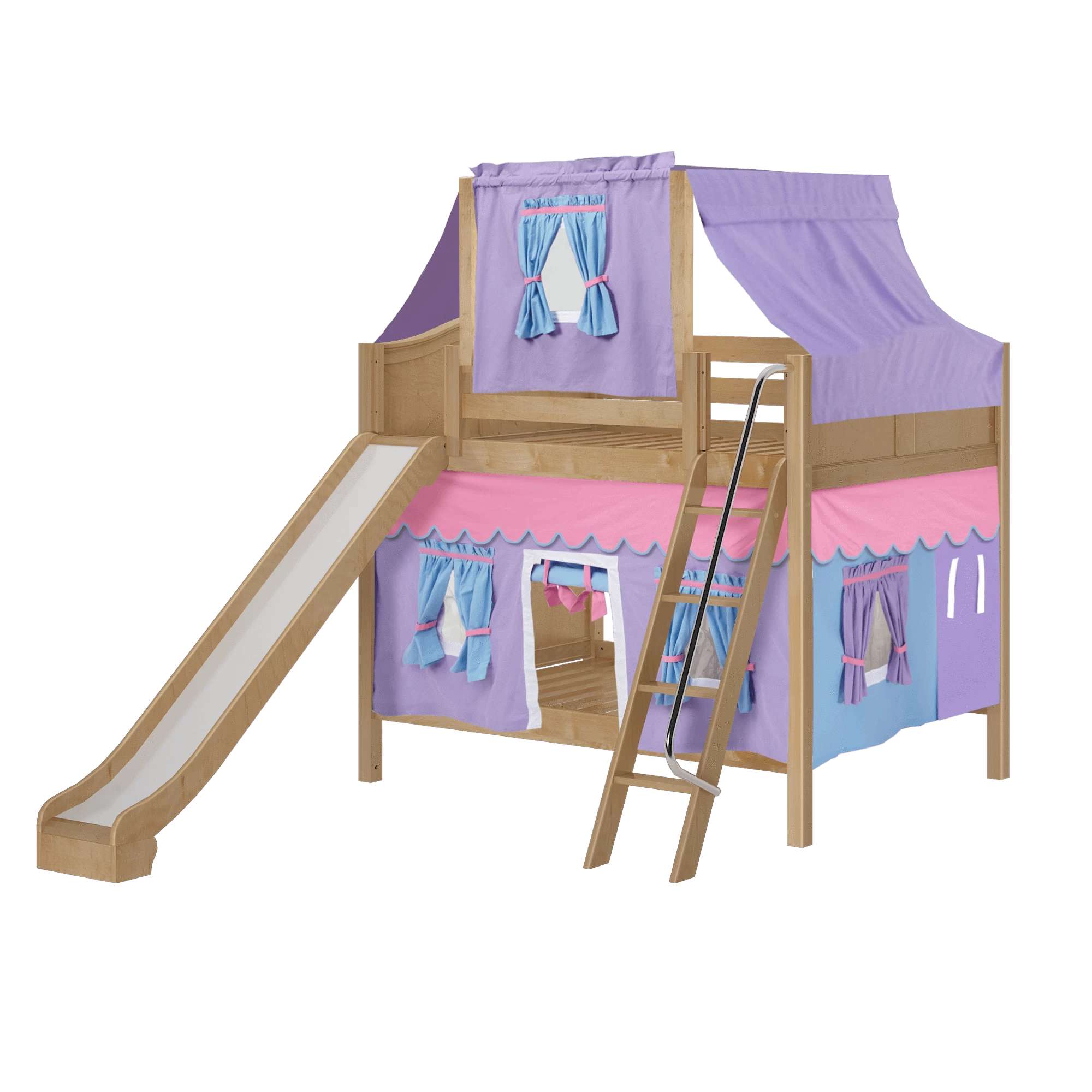 Colorful fabrics + slide turn our best-selling style into a bed built for fun. Climb up angled ladder with sturdy handrail, then take the slide back down. Medium bunk offers more space between top and bottom. Full size = extra room for growing kids, sleepovers or snuggling.