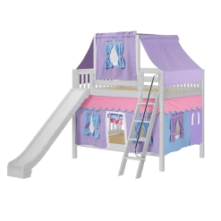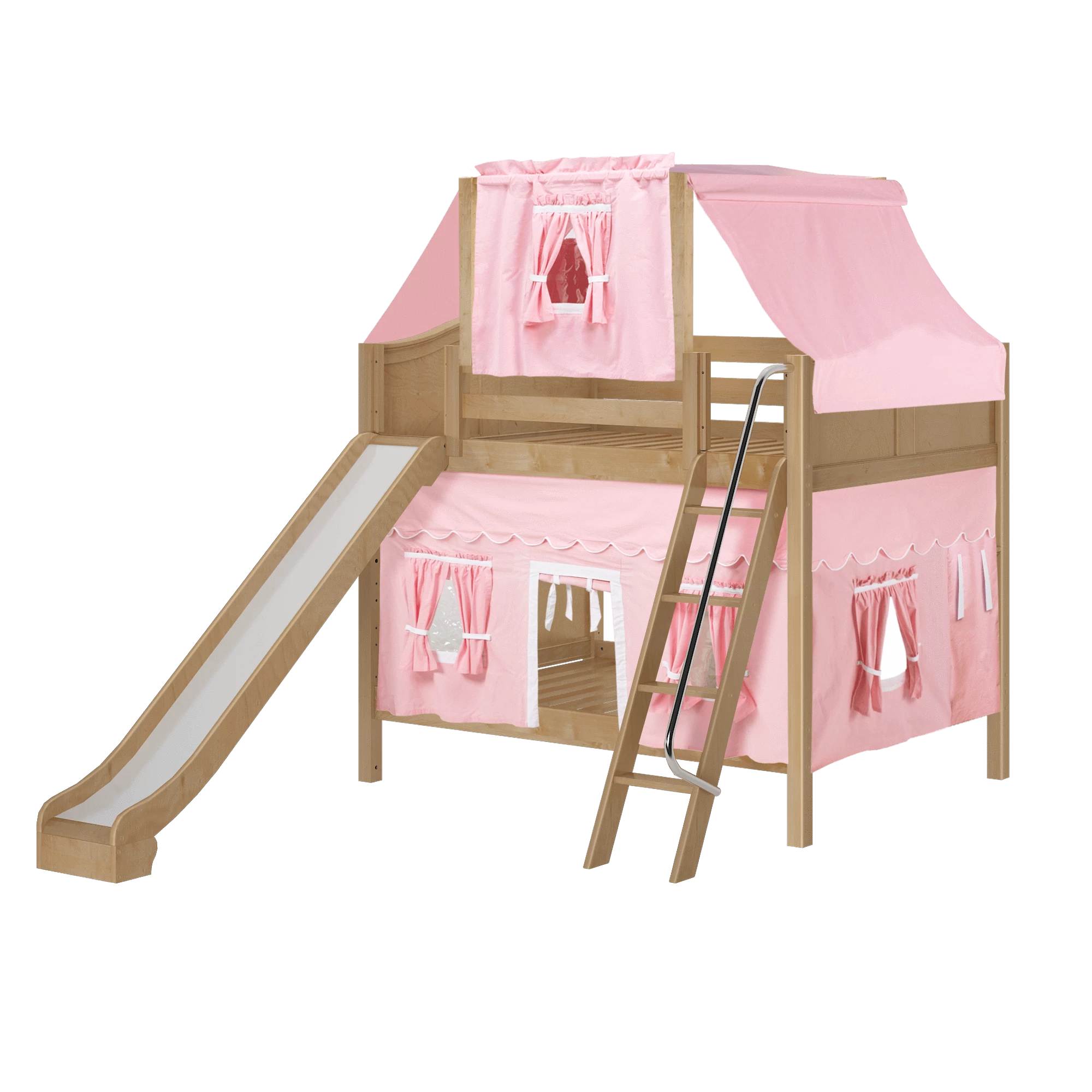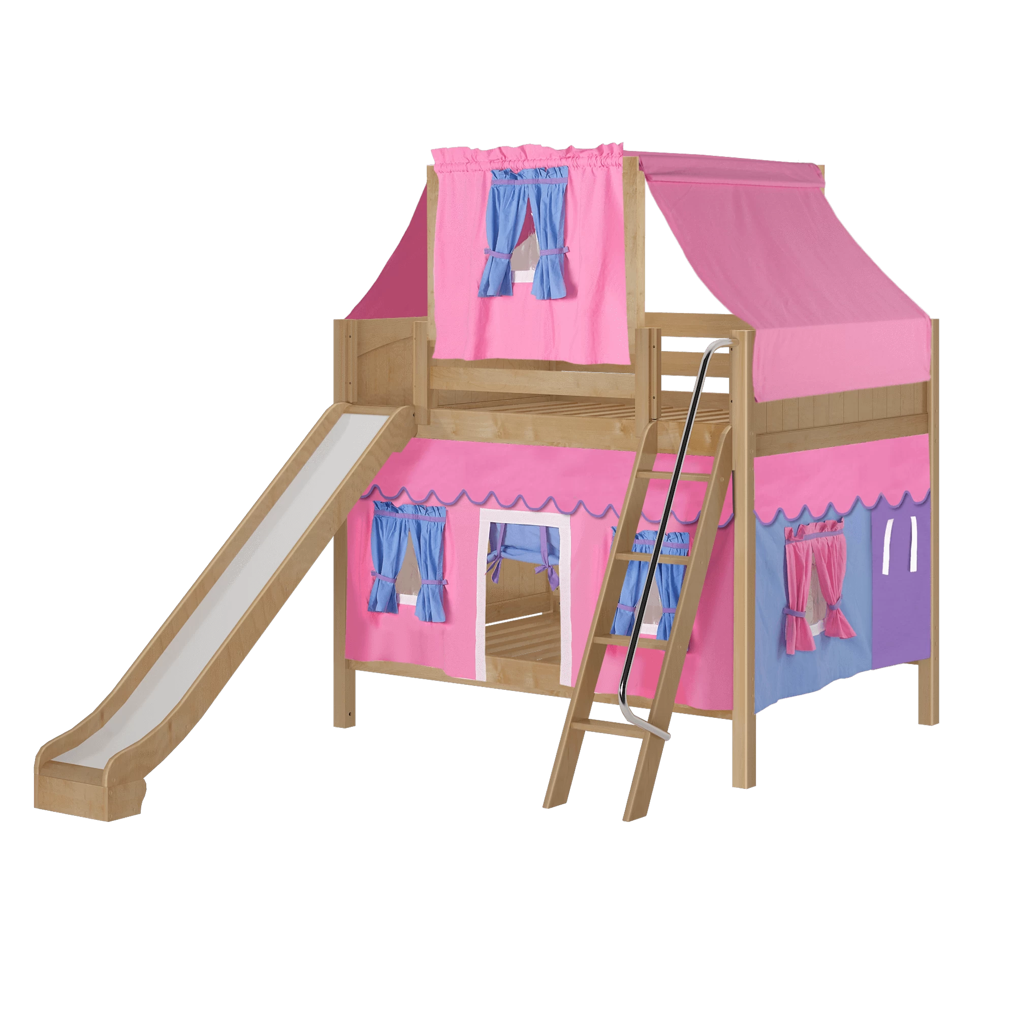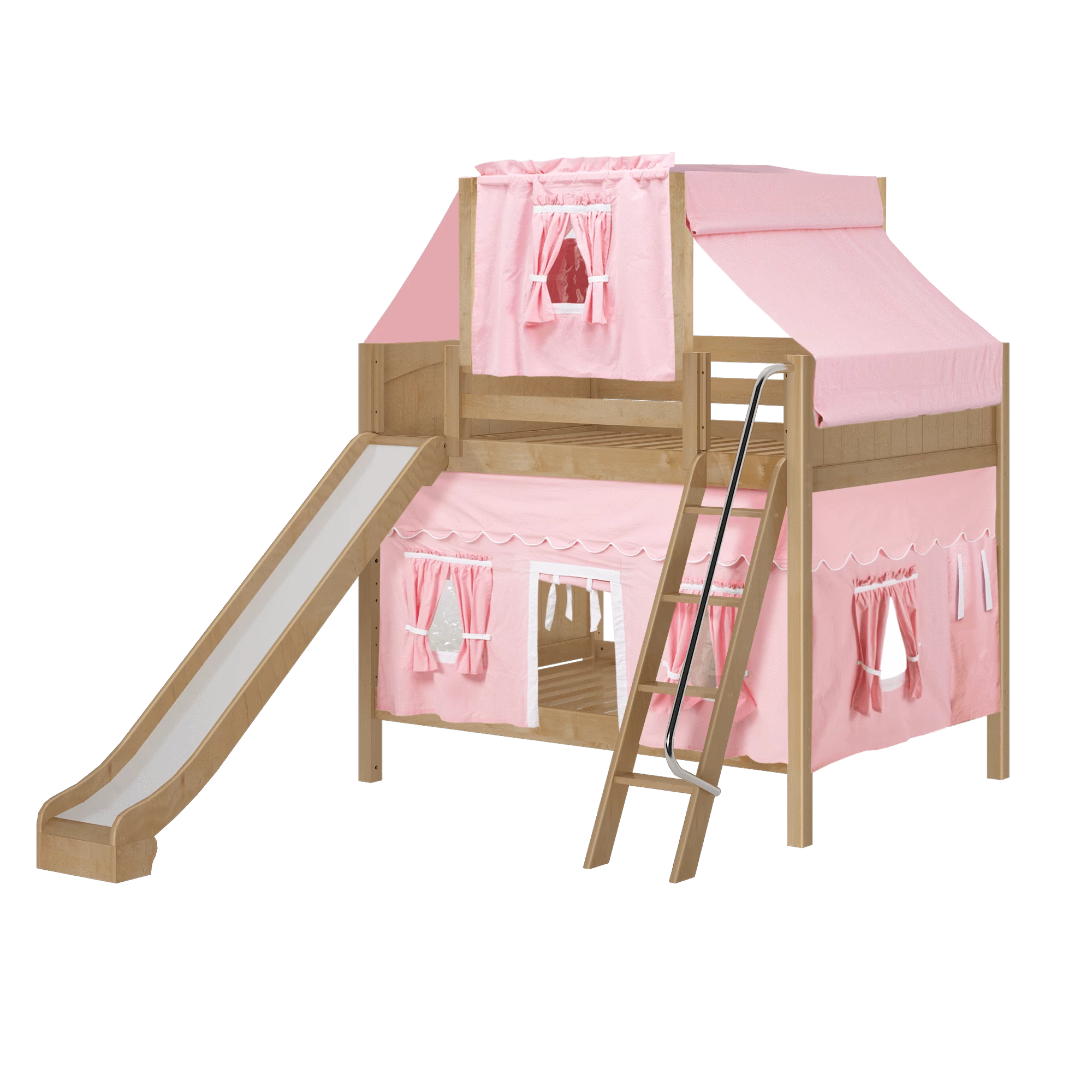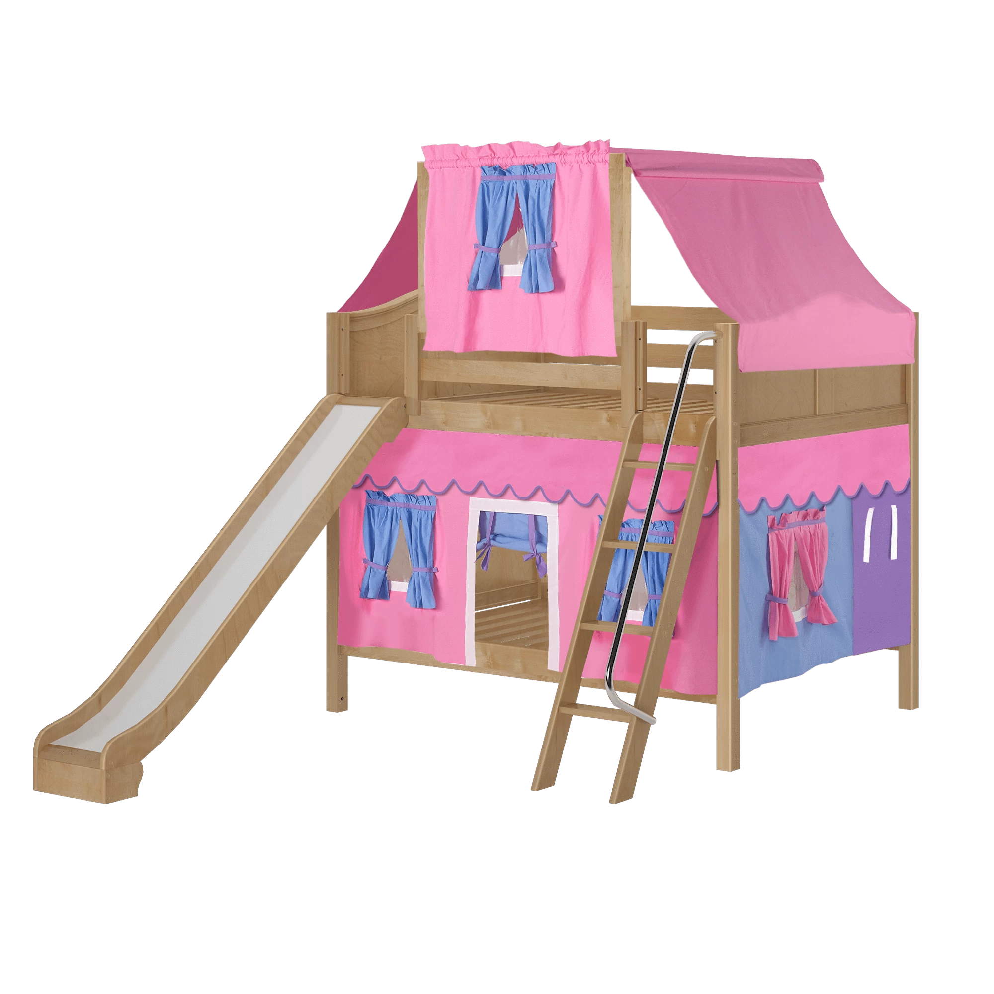Colorful fabrics + slide turn our best-selling style into a bed built for fun. Climb up angled ladder with sturdy handrail, then take the slide back down. Medium bunk offers more space between top and bottom. Full size = extra room for growing kids, sleepovers or snuggling.