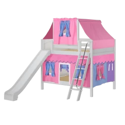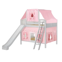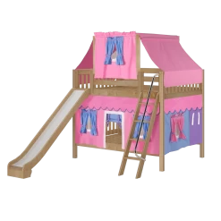 We added colorful fabrics + super fun slide to our full-size medium bunk bed so you can create the ultimate shared room or sleepover-headquarters.