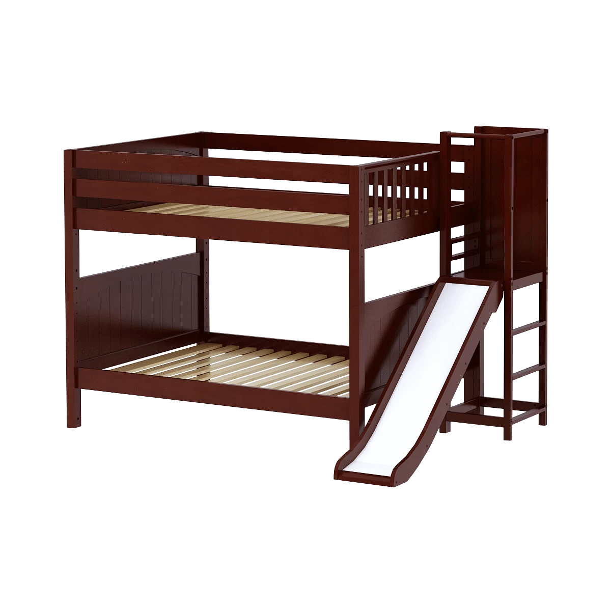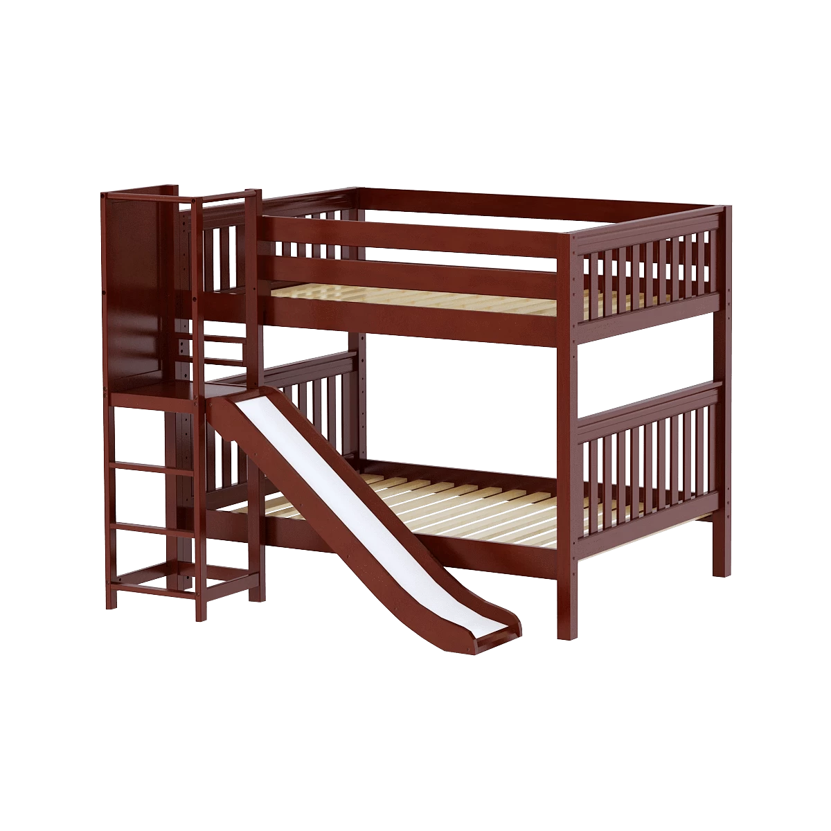 Parents and kids are sure to love this new take on our full size medium bunk bed with slide! We turned up the fun on a Maxtrix best-seller so you can create the ultimate shared room or sleepover-headquarters.