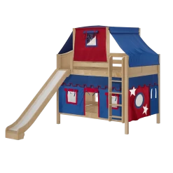 We added colorful fabrics + super fun slide to our full-size medium bunk bed so you can create the ultimate shared room or sleepover-headquarters.