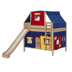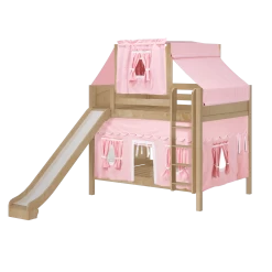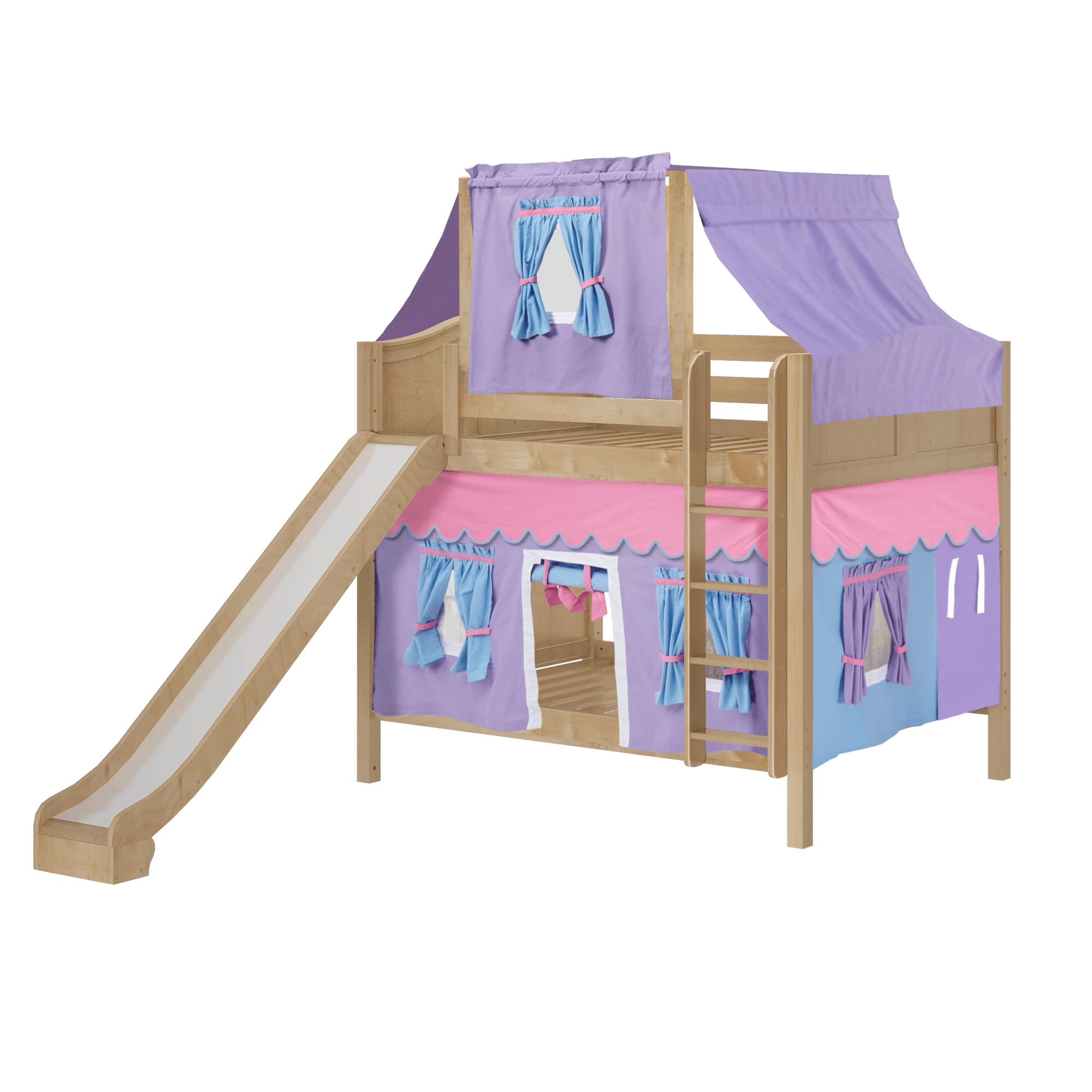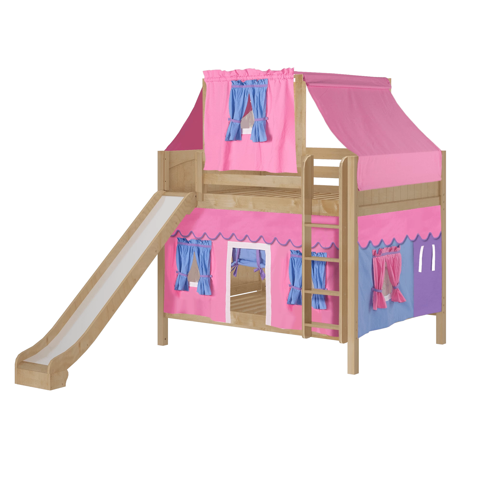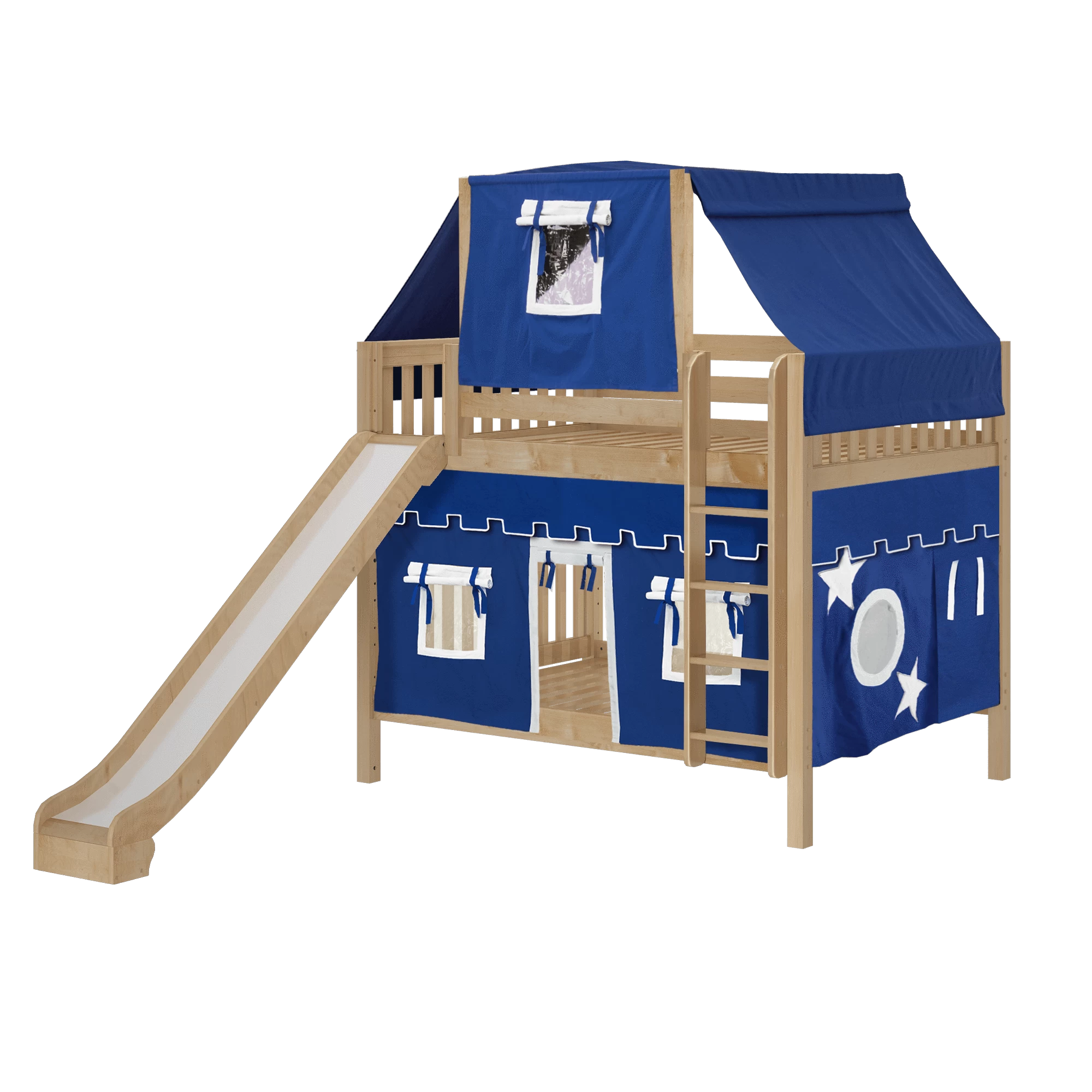 Colorful fabrics + slide turns our best-selling style into a bunk bed built for fun. Climb up straight ladder then take the slide back down. Medium bunk offers more space between top and bottom. Full size = extra room for growing kids, sleepovers or snuggling.