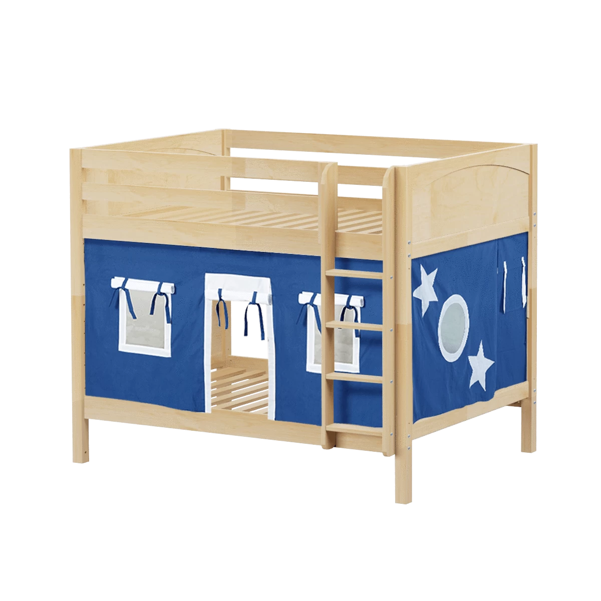 Our best-selling style gets a fun makeover with the addition of adorable fabric curtains. Medium bunk offers more space between top and bottom beds. Straight ladder attaches flush against the bed for a clean finish. Full size = extra room for growing kids, sleepovers or snuggling with parents.
