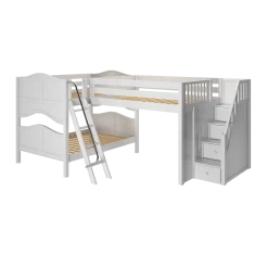 Customize based on your needs. Turn open space under the loft into a study nook, fill with storage, or leave free for playtime. You can even to sleep a 4th by adding a trundle bed to the lower bunk!