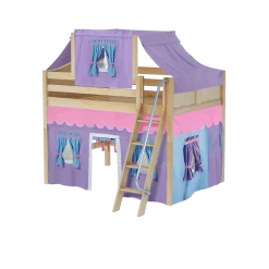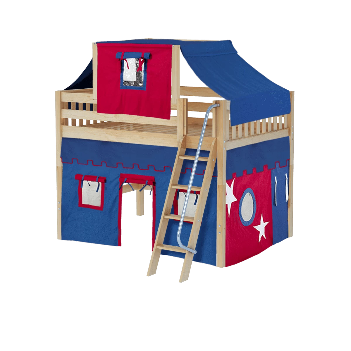 Our best-selling mid loft bed gets an extra dose of fun with the addition of colorful fabrics. Curtains + matching top tent will inspire your child’s imagination during the day and help them sleep soundly at night. Full size = extra room for growing kids, sleepovers or snuggling.