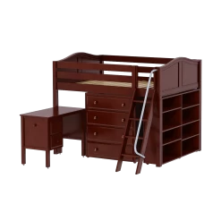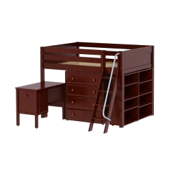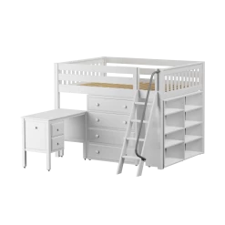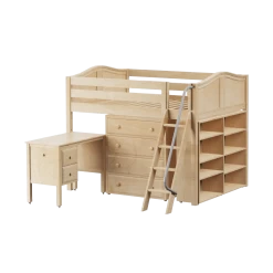 Our mid loft with angled ladder becomes the ultimate storage + study cube! Matching casegoods and desk designed to fit perfectly in the space beneath. Each piece is freestanding, so you can also use separately. Full size = extra room for growing kids, sleepovers or snuggling.