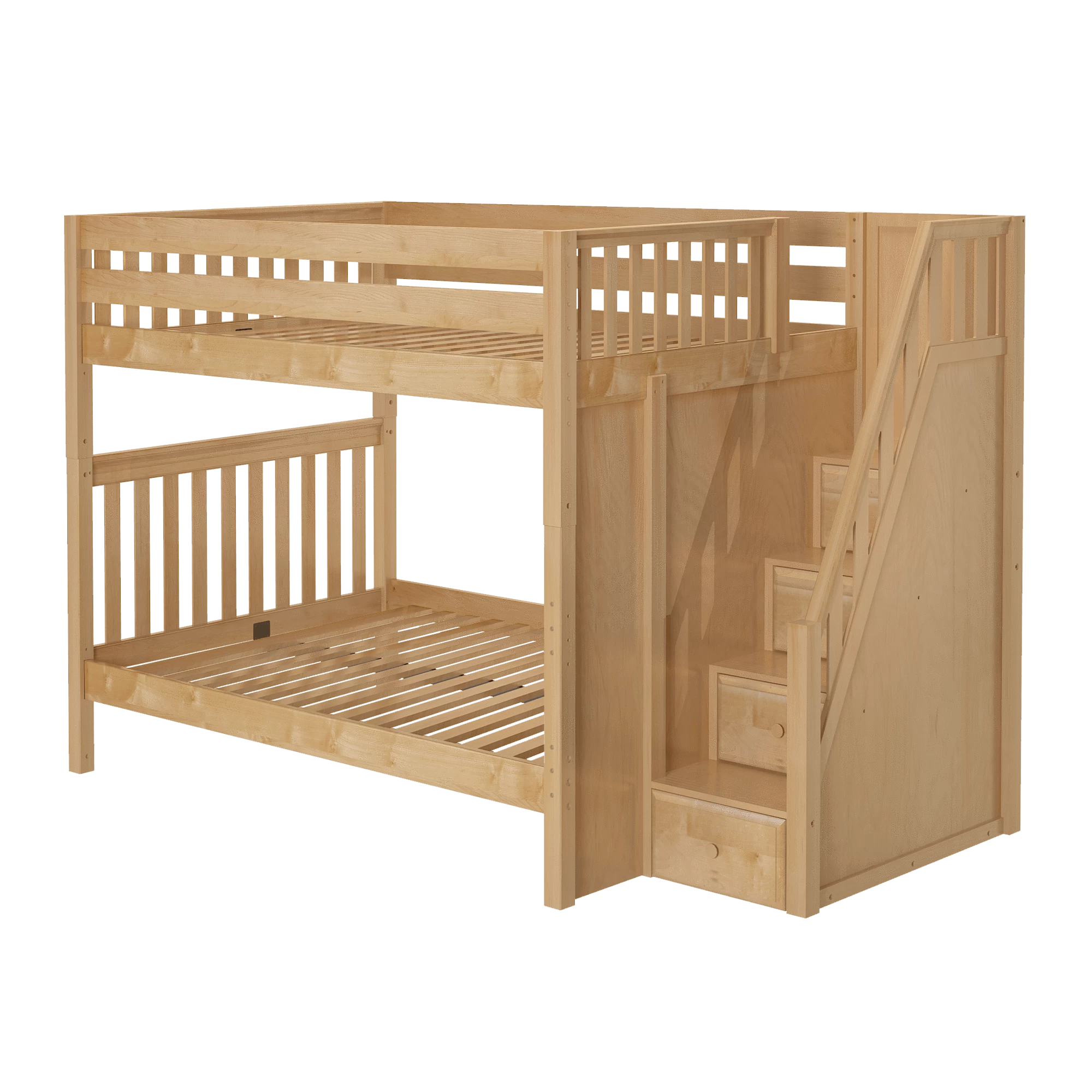 Staircase is an easy way for younger kids to climb up top and sturdy enough for adults. Each step has a deep drawer, providing built in storage to help keep bedrooms tidy.