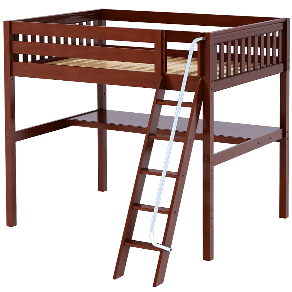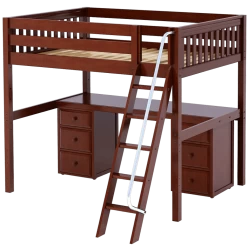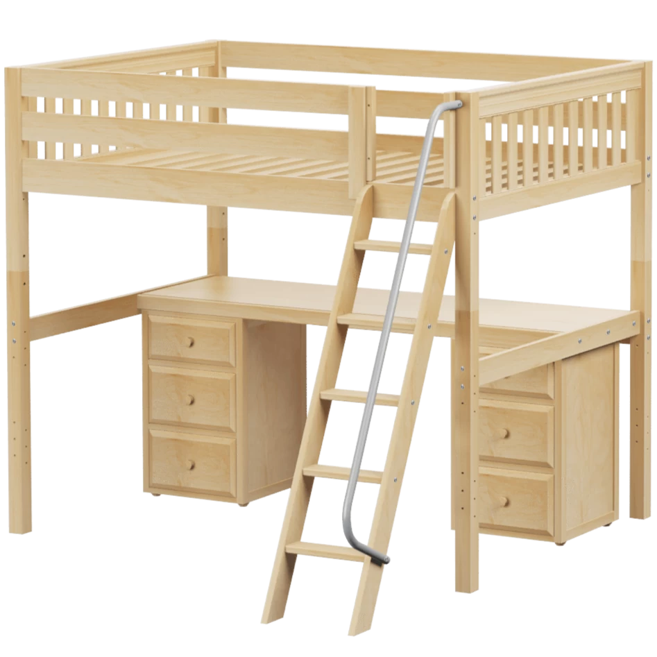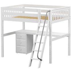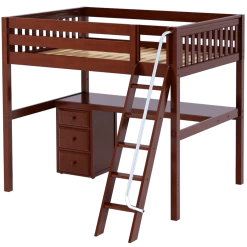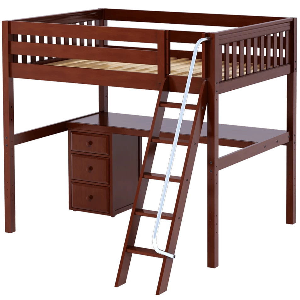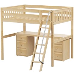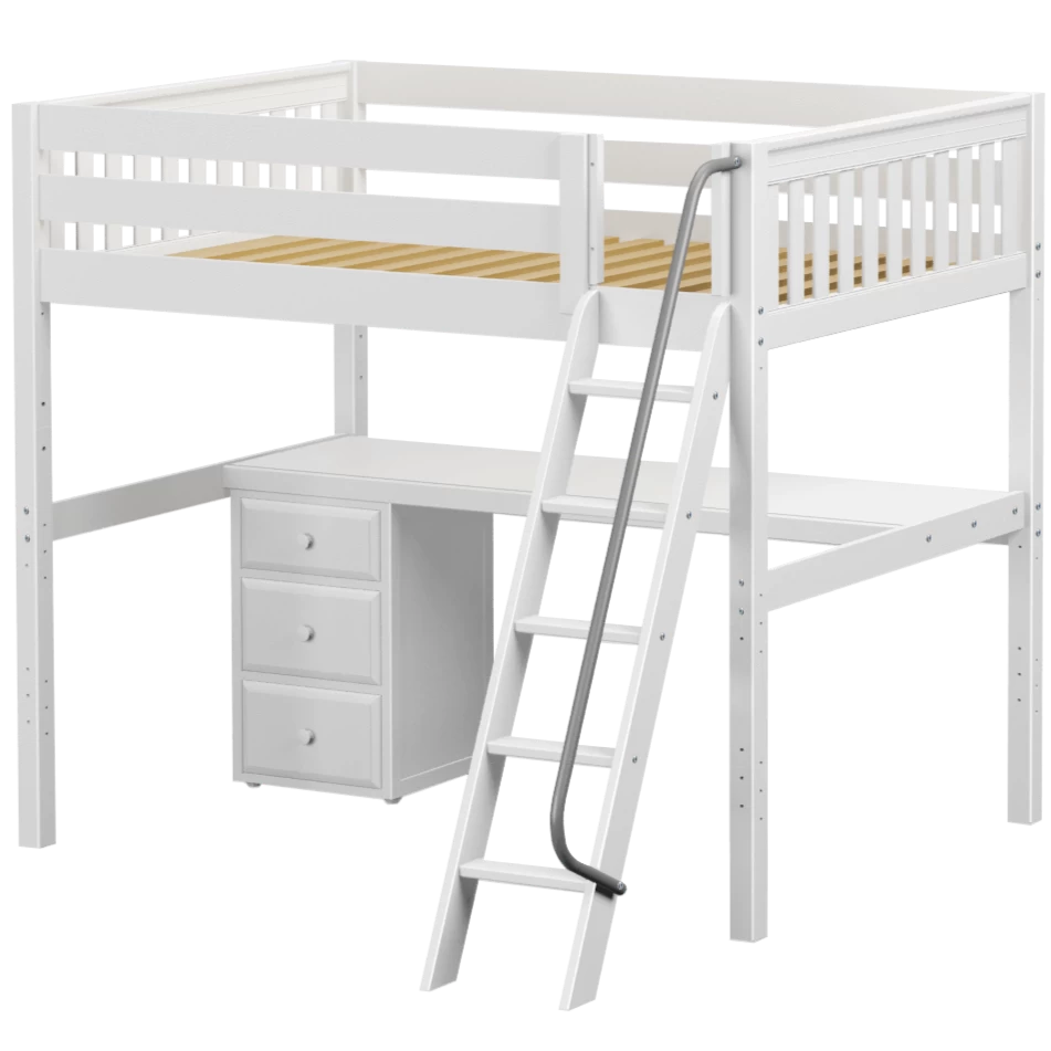 Our high loft with angled ladder becomes the ultimate sleep + study combo! Matching desk attaches directly underneath, freeing up valuable floorspace. Over 4 ft of underbed clearance means even tall teenagers can sit up comfortably. Full XL size = extra room for long limbs to stretch out.