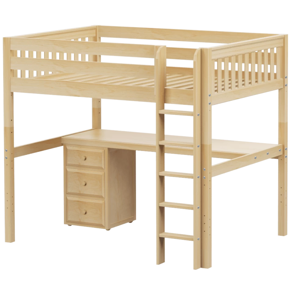 Our high loft with stairs becomes the ultimate sleep + study combo! Attached matching desk creates a functional spot for schoolwork and frees up valuable floorspace in the bedroom. Easy to climb staircase steps double as storage drawers. Now available in Full XL size so there’s plenty of room to grow.