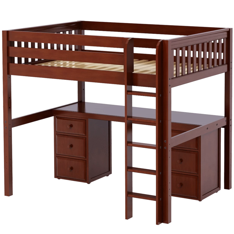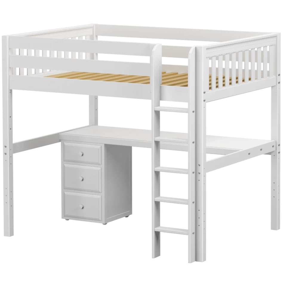 Choose from long desk that runs the length of the bed or version with storage drawers. Each style connects directly to the bed legs, for a sturdy, clean finish. Desks remove easily when no longer needed, leaving you with a classic high loft.