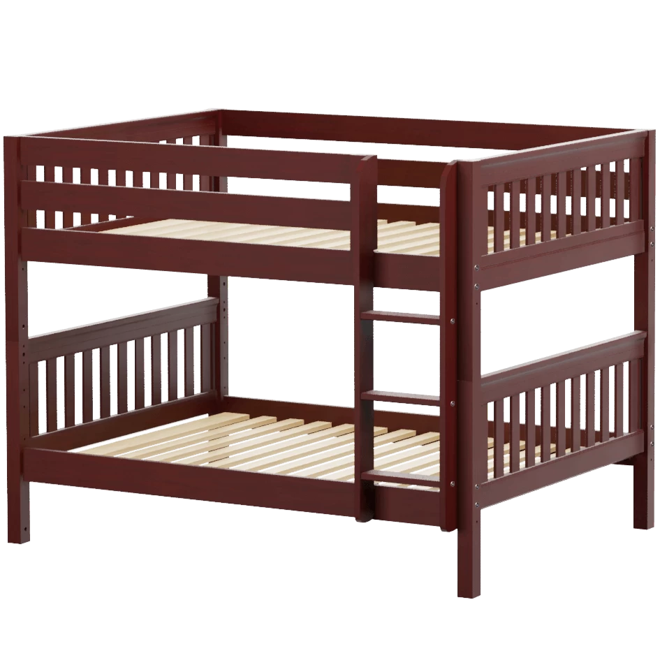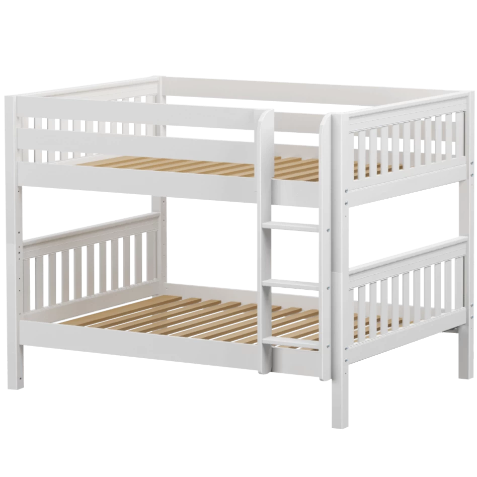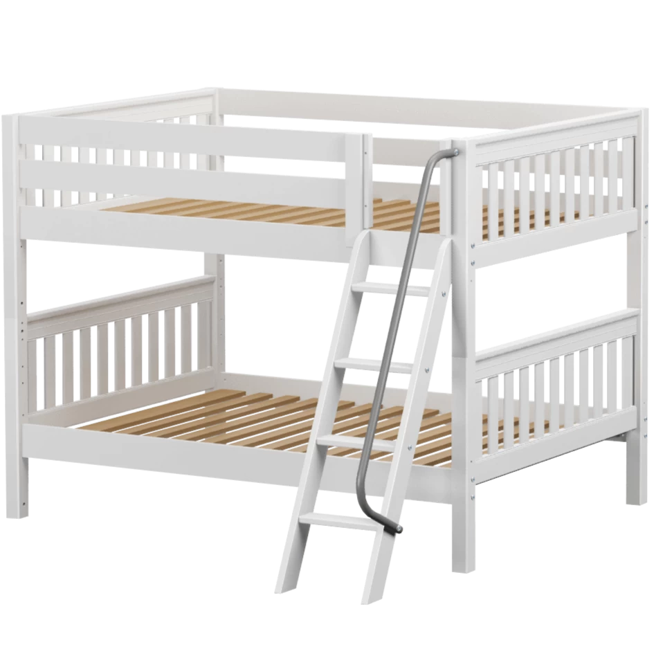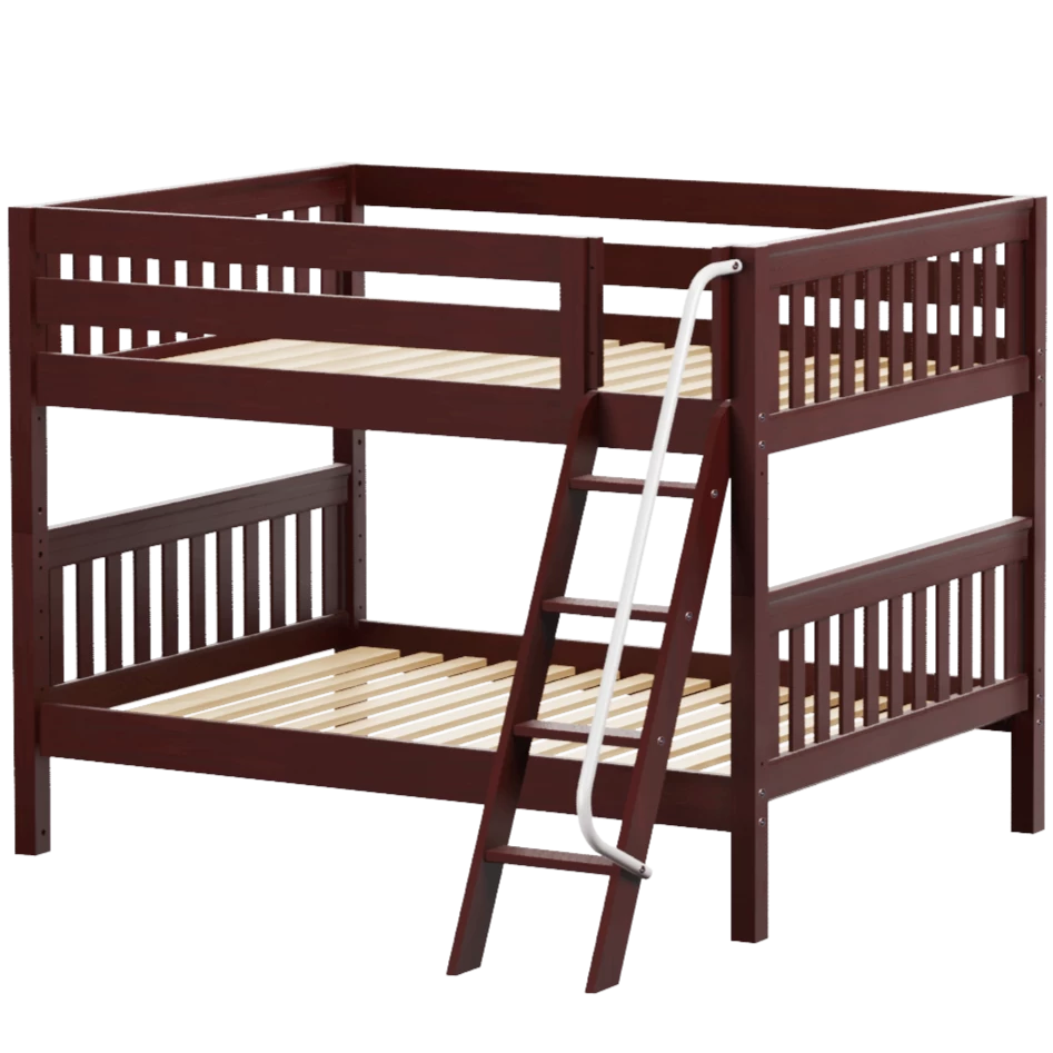 Sleep two comfortably in one bedroom while conserving space with this classic low bunk bed. Two full XL beds stacked to form one solid unit using patented Rock Lock system. Super sturdy and strong/stable. Choose from space-saving straight ladder or extra-safe angle ladder. XL = additional 4β length (84β).