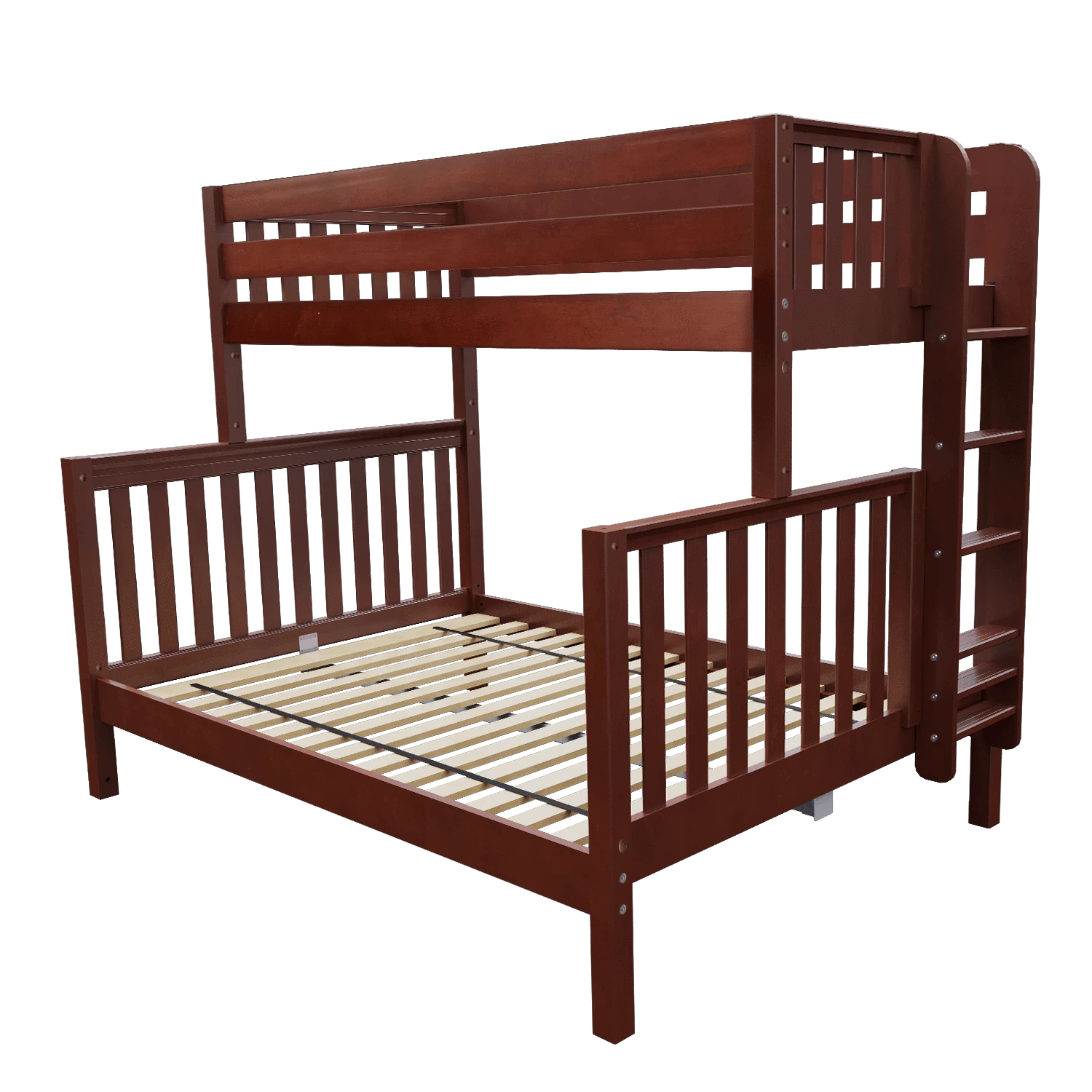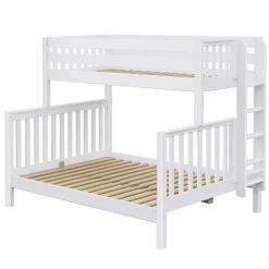 Our new Twin XL over Queen bunk is the perfect solution for accommodating your tallest kids and even adults too! Top bunk raised higher for more space between beds = no more bumped heads on the bottom. Stacked design saves valuable floor space and patented Rock Lock system keeps it super sturdy.