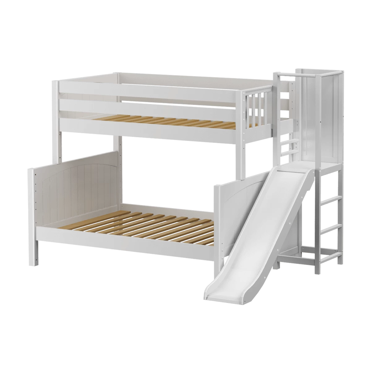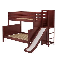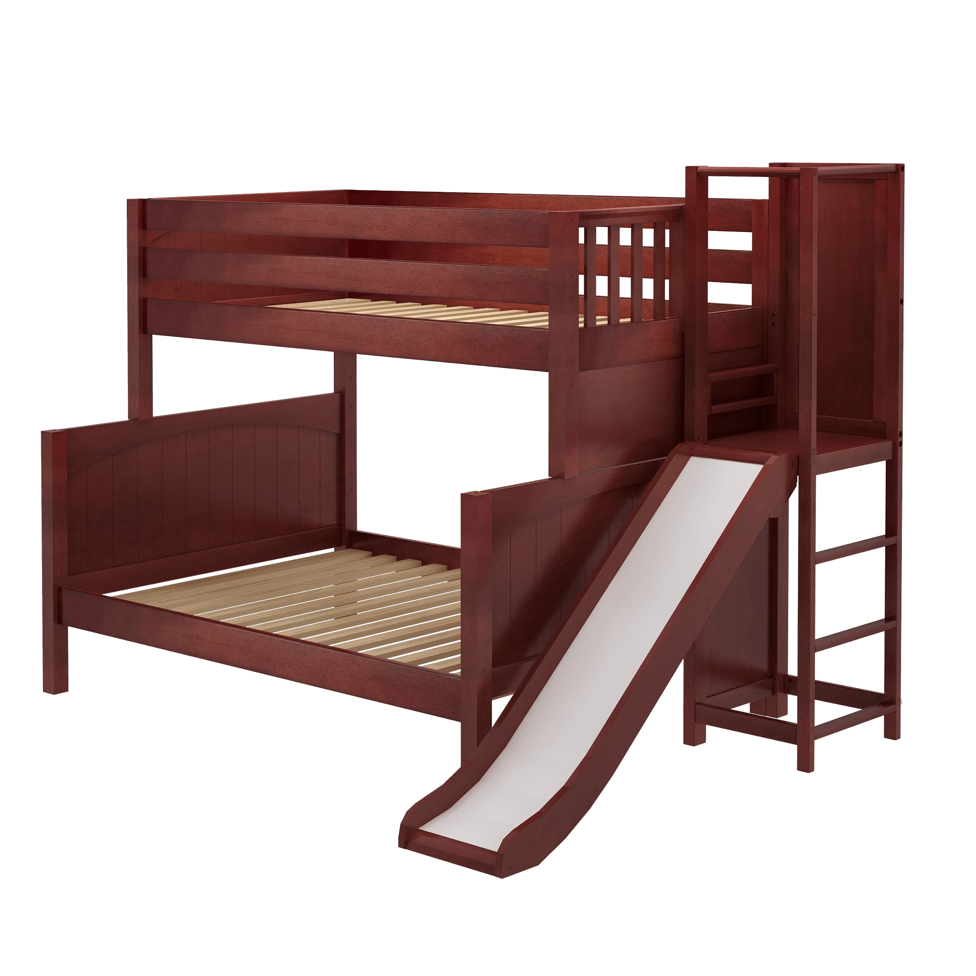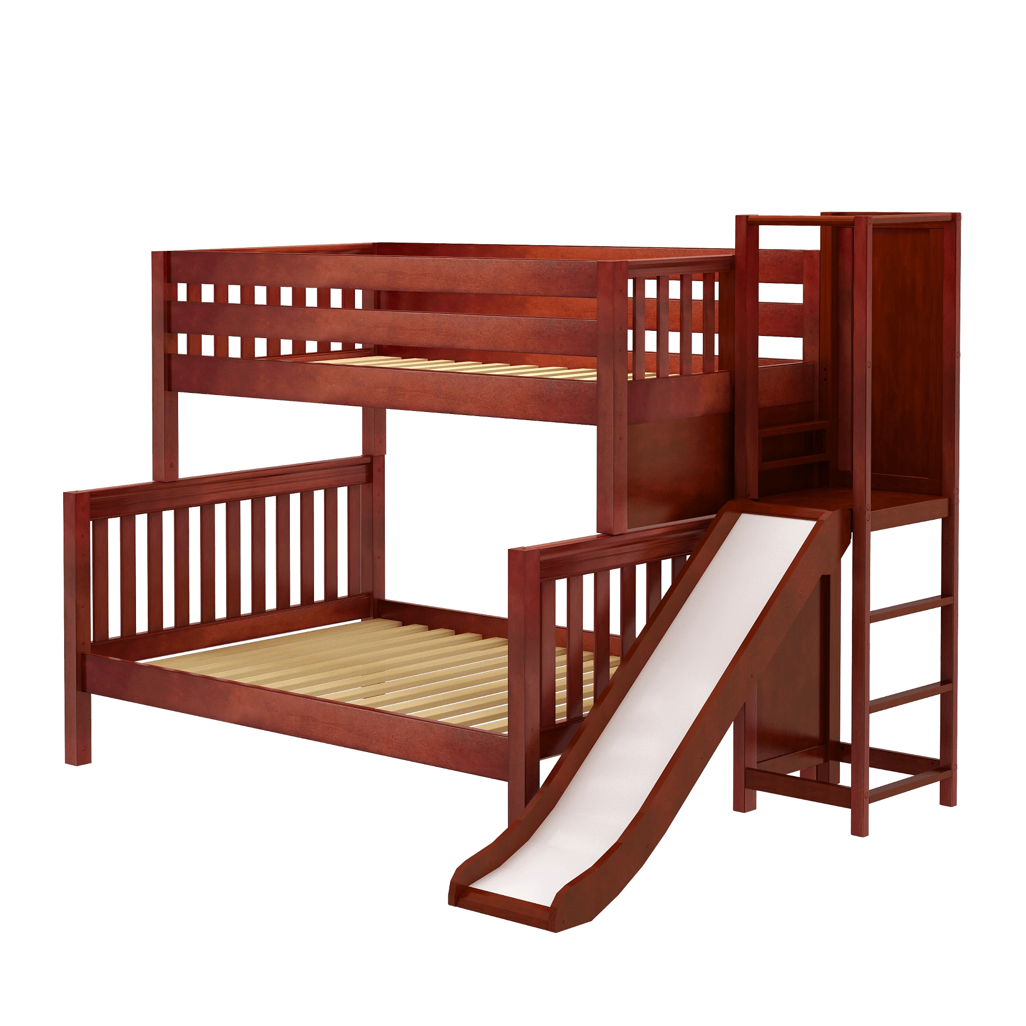 We added a slide to our classic twin over full bunk bed for the ultimate combination of fun and function. Staggered design sleeps different sizes and ages comfortably in one room. Platform positioned at the bed end + doubles as entry way to top.